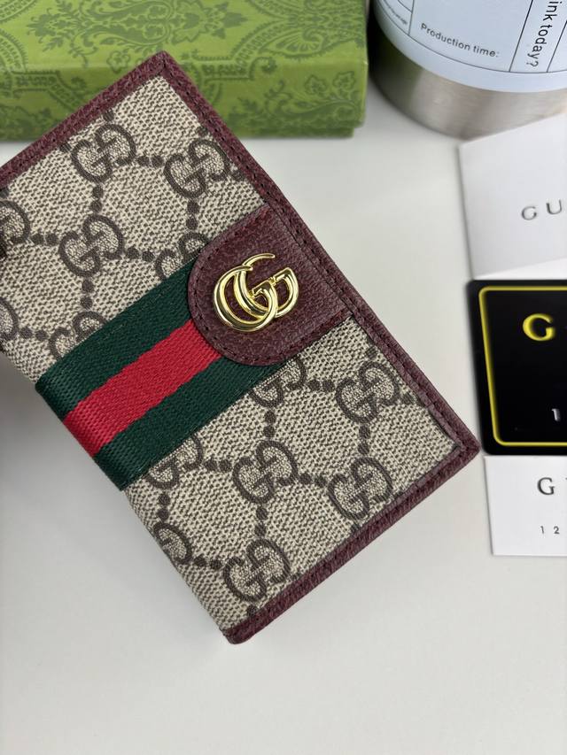 New arrival, synchronized with Guccl official website! Ophidia series cardholder/wallet, made of Gg Supreme pigskin with PVC and the iconic double G hardware, classic red and green webbing, and high-end cotton zipper