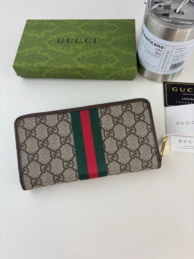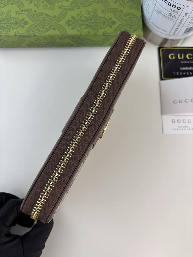 New arrival, synchronized with Guccl official website! Ophidia series zippered wallet, made of Gg Supreme pigskin with PVC and the iconic double G hardware mark, classic red and green webbing, and high-end cotton zipper