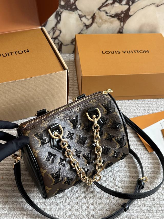 New Arrival with Box Size: 20*14cm Louis Vuitton Sequin Speedy 20 Let's experience the joy of the new style together~ I absolutely love carrying this little bag~ Search: LV Nano