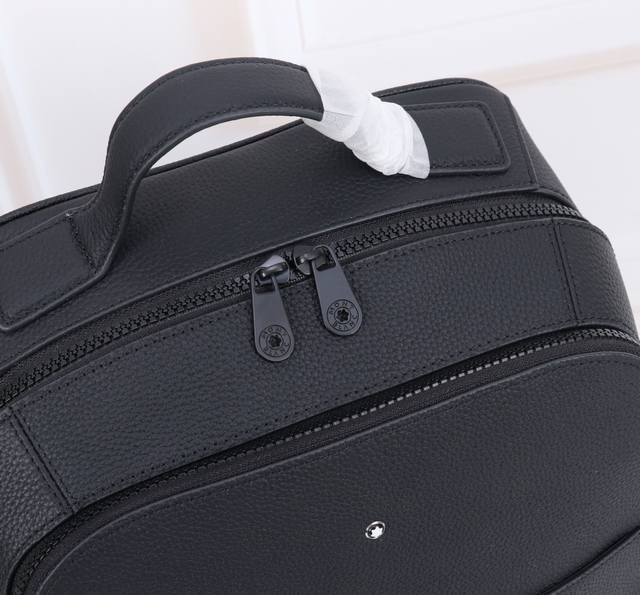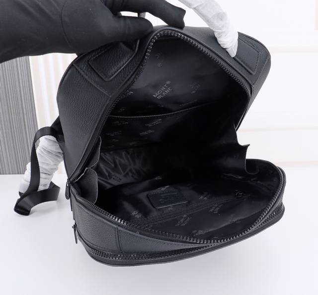 New Backpack Model: Mb156757# Black, made with top-grain cowhide leather, exclusively used in boutiques. Montblanc's classic craftsmanship series upholds the brand's long-standing tradition, offering a wide range of large and small leather goods that blend business and casual styles, representing a fusion of contemporary design and classic elegance. Made with top-grain cowhide leather, high-fiber lining, and boutique hardware, superior quality. Dimensions: 31 x 7 x 40 mm.