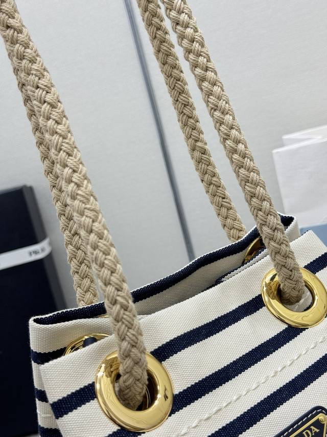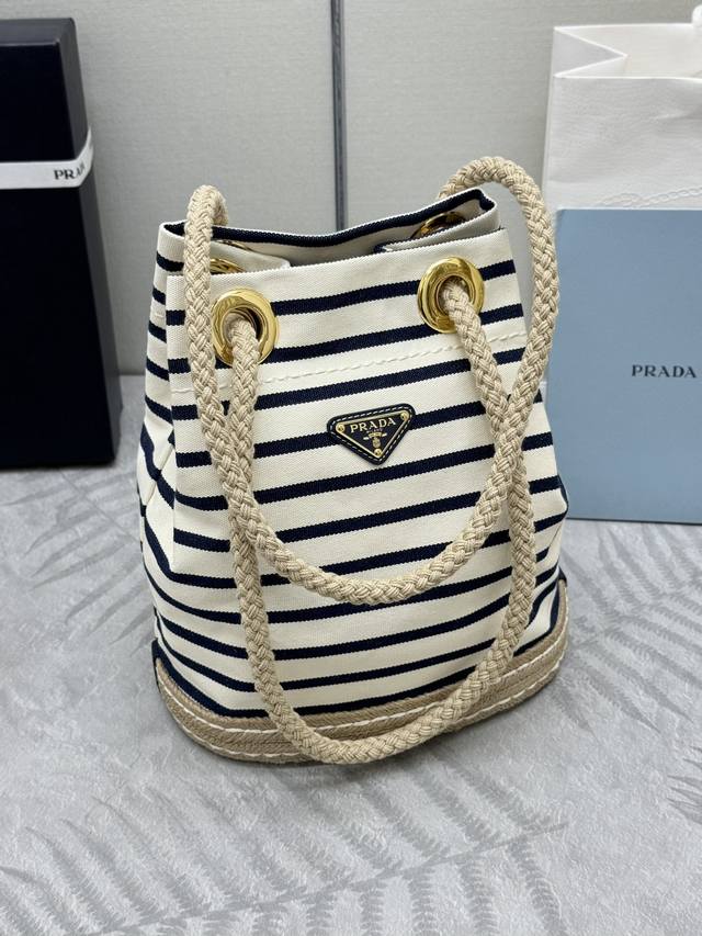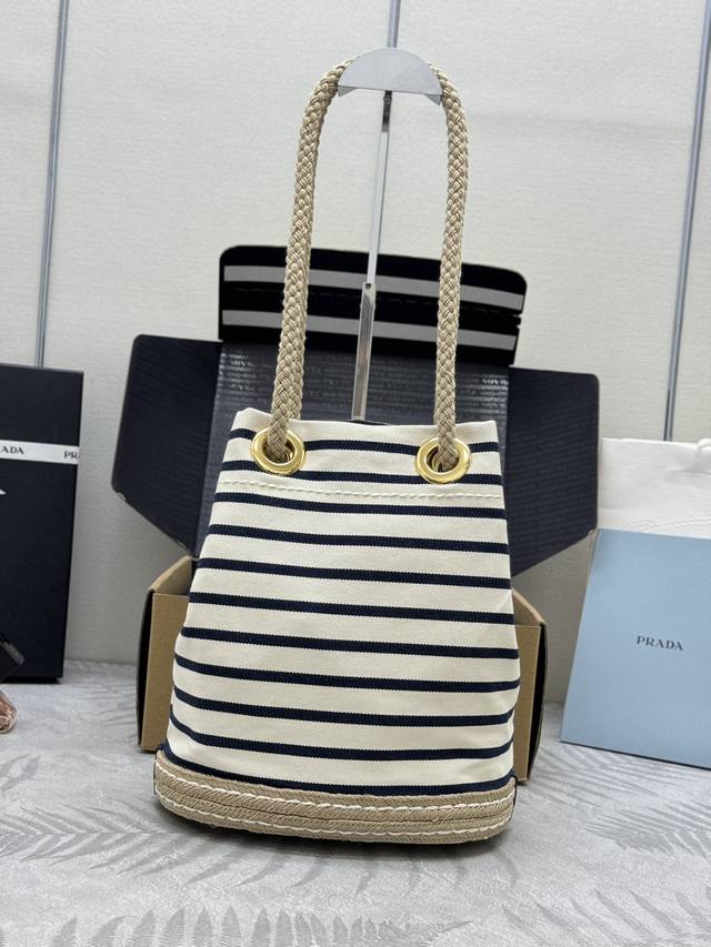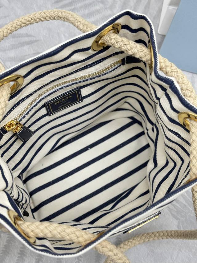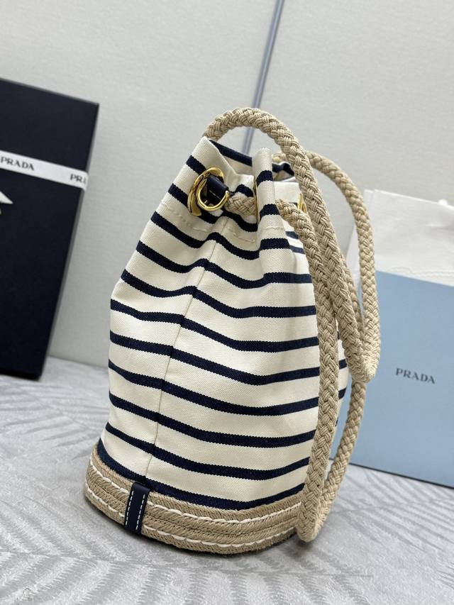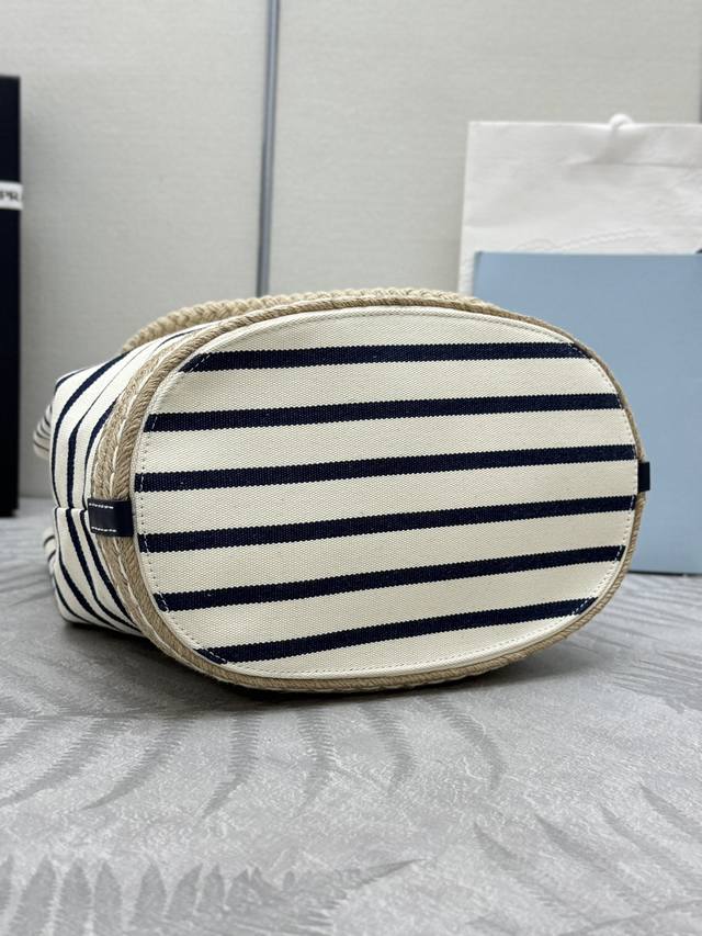 This fabric bucket bag features a nautical striped pattern, adding a touch of color to any look. The bottom design is inspired by espadrilles, while the rope detail symbolizes the nautical world, creating a rich summer vibe. Top-quality hardware, spacious interior, very casual and stylish, a summer essential, and a timeless bestseller. Grab yours now, everyone!