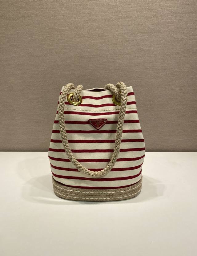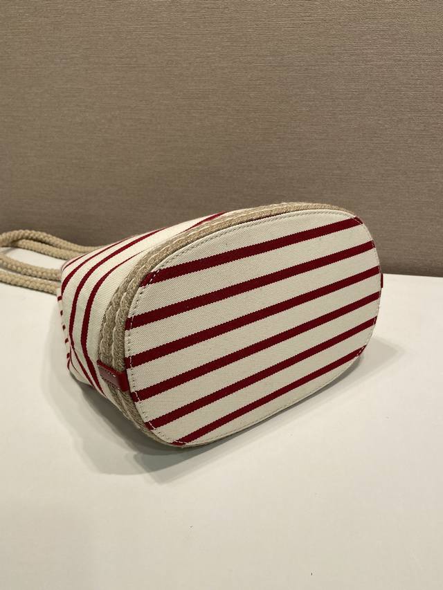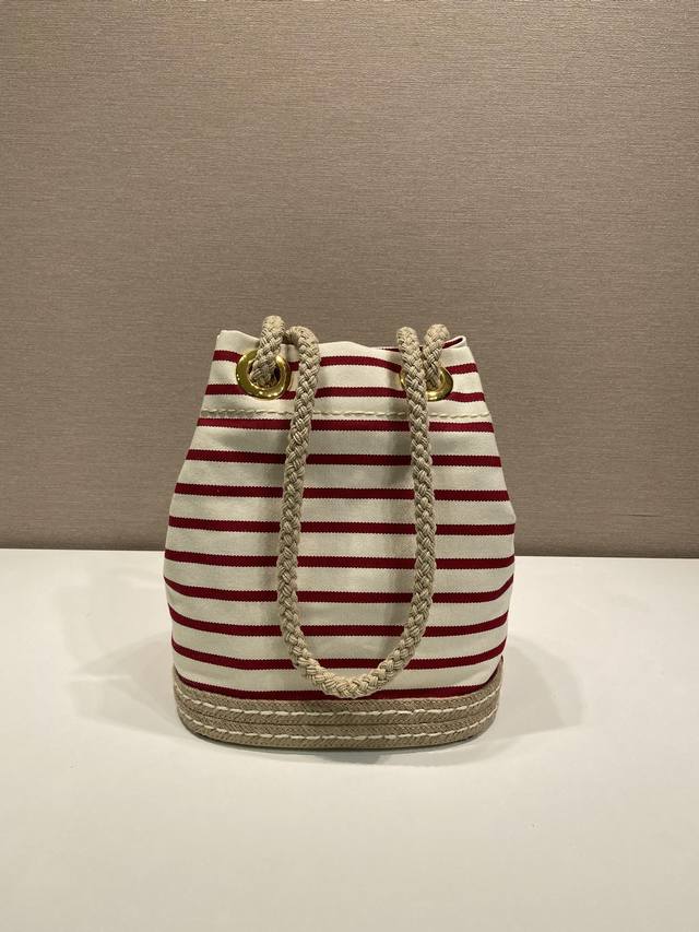 This fabric bucket bag features a nautical striped pattern, adding a touch of color to any look. The bottom design is inspired by espadrilles, while the rope detail symbolizes the nautical world, creating a rich summer vibe. Top-quality hardware, spacious interior, very casual and stylish, a summer essential, and a timeless bestseller. Grab yours now, everyone!