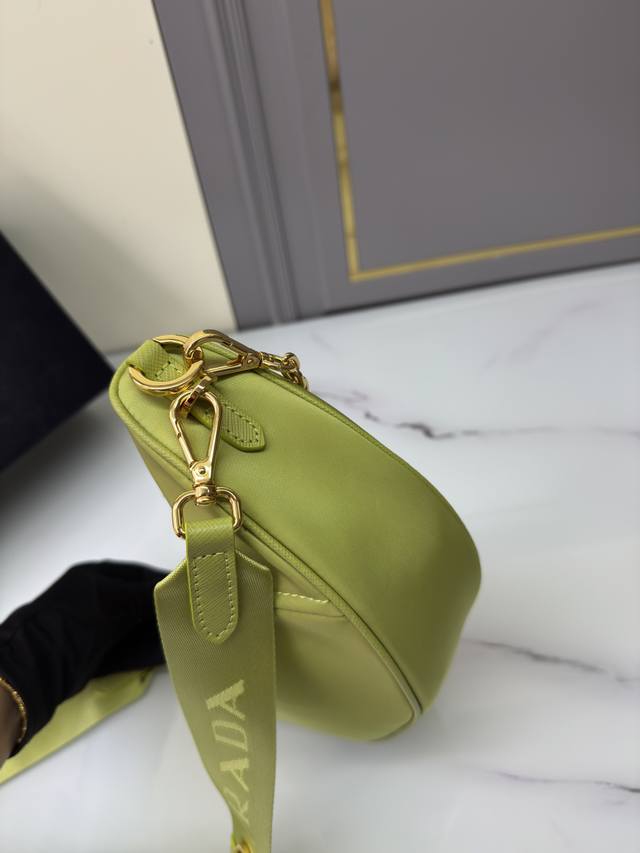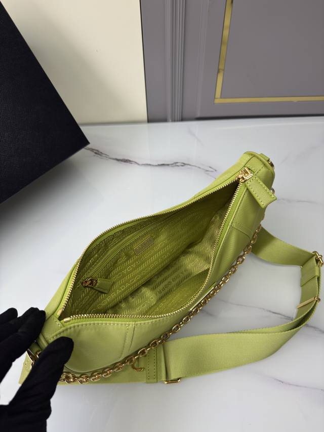 This Re-Nylon handbag is made from recycled nylon fabric, exquisite and versatile, blending an archive silhouette with practical contemporary style. The crescent shape, combined with a detachable sporty shoulder strap and elegant chain handle, offers multiple carrying options. Wear it crossbody, underarm, or carry it by hand