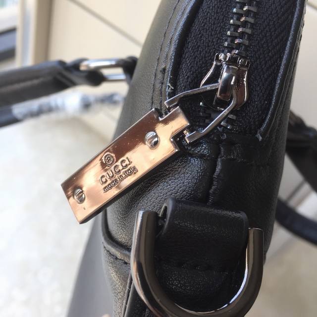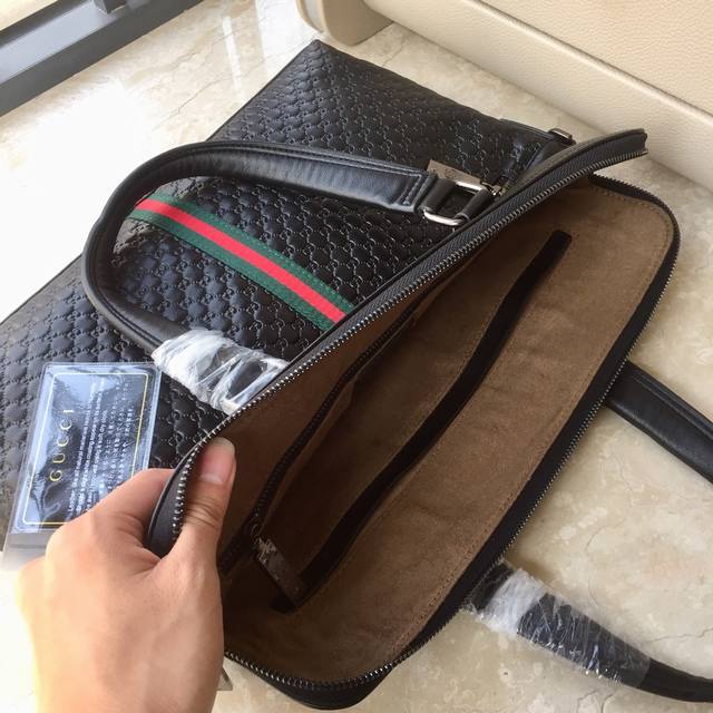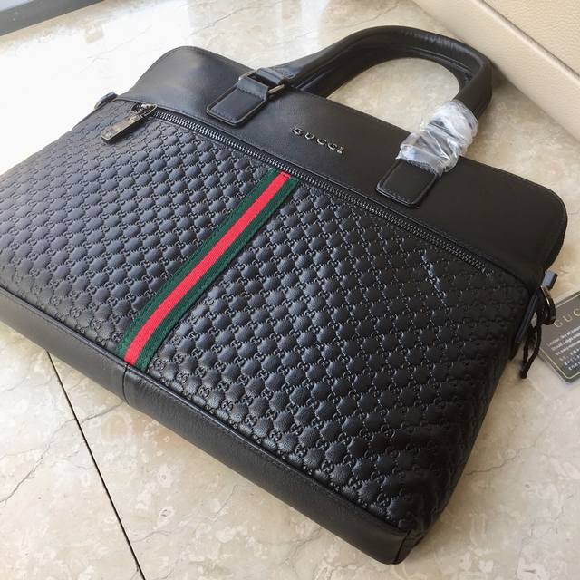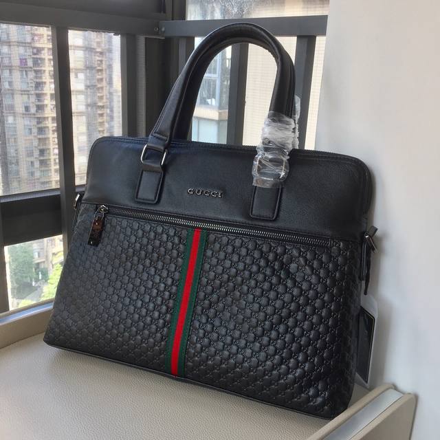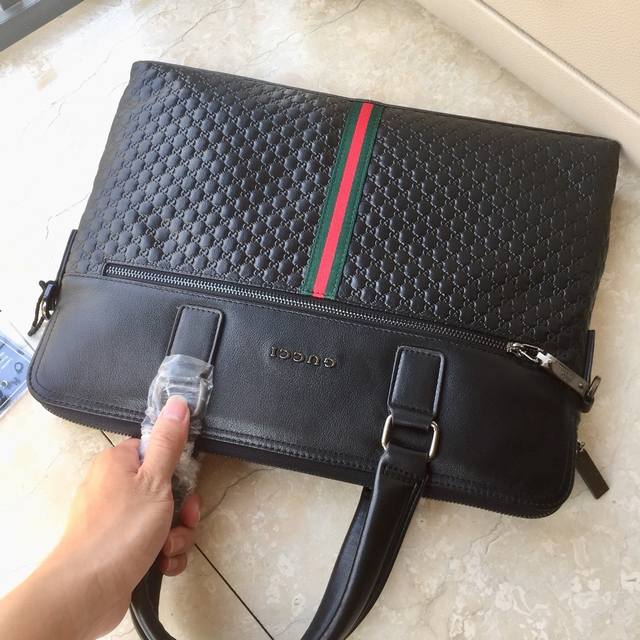 New Gucci 1177# Men's Premium Briefcase/Handbag/Crossbody Bag - Hot Selling Item. Pay attention to the leather and details; high-end, sophisticated, and classy. Original quality calfskin and high-grade imported hardware. Soft leather with a superb feel. High-end, stylish, and fashionable. Exclusive: First release. Original color: Black. Material: Original leather. Size: 38-29-5.