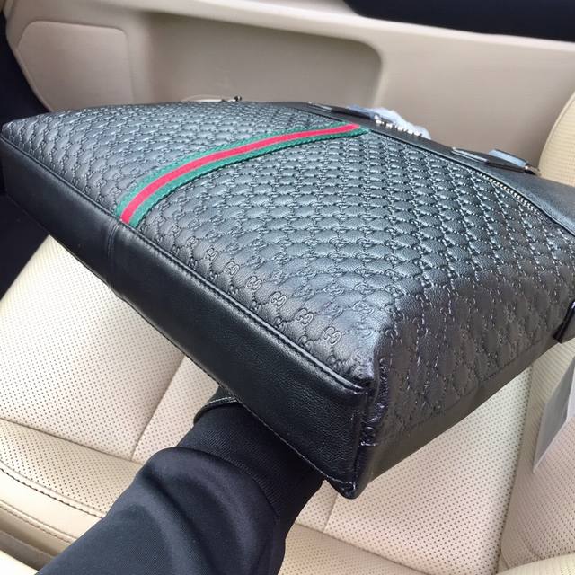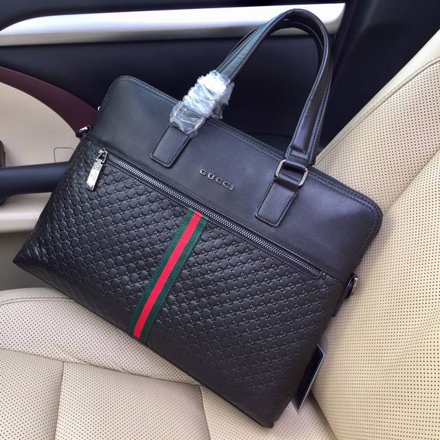 New Gucci 1177# Men's Premium Briefcase/Handbag/Crossbody Bag - Hot Selling Item. Pay attention to the leather and details; high-end, sophisticated, and classy. Original quality calfskin and high-grade imported hardware. Soft leather with a superb feel. High-end, stylish, and fashionable. Exclusive: First release. Original color: Black. Material: Original leather. Size: 38-29-5.