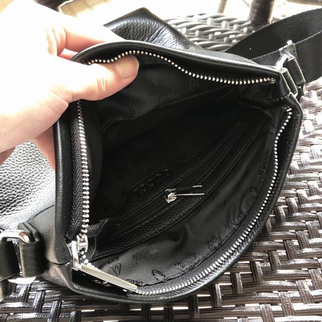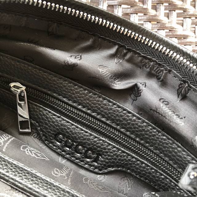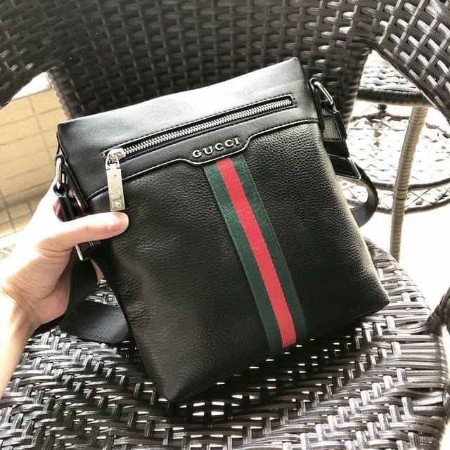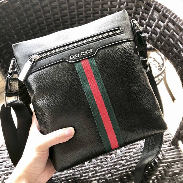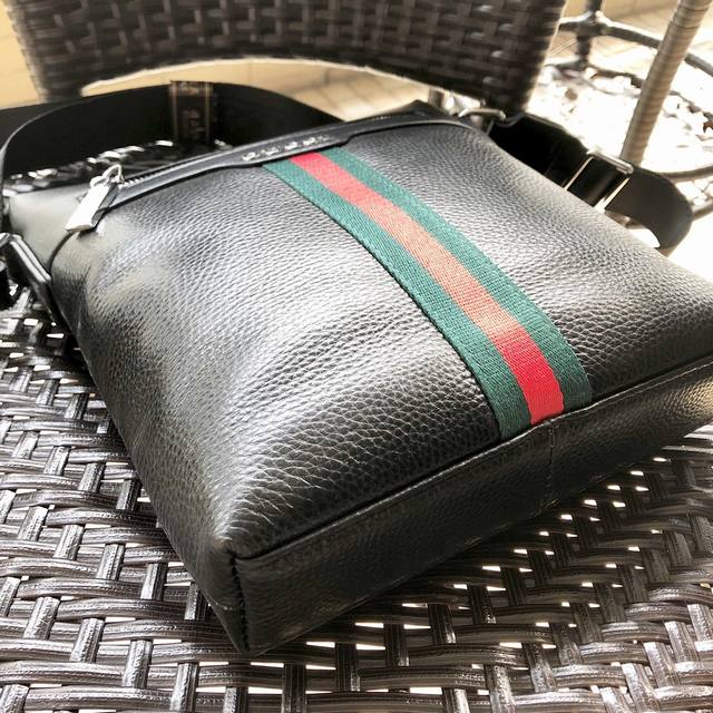 New Gucci 3088# Men's High-End Crossbody Bag, Hot Selling Item. Please look for the leather and details. High-end, elegant, and classy. Original quality, original lychee-textured cowhide and high-grade imported hardware. Soft leather, excellent feel. High-end, elegant, and stylish. Exclusive: First release. Original color: Black. Material: Original leather. Size: 23-27-5.