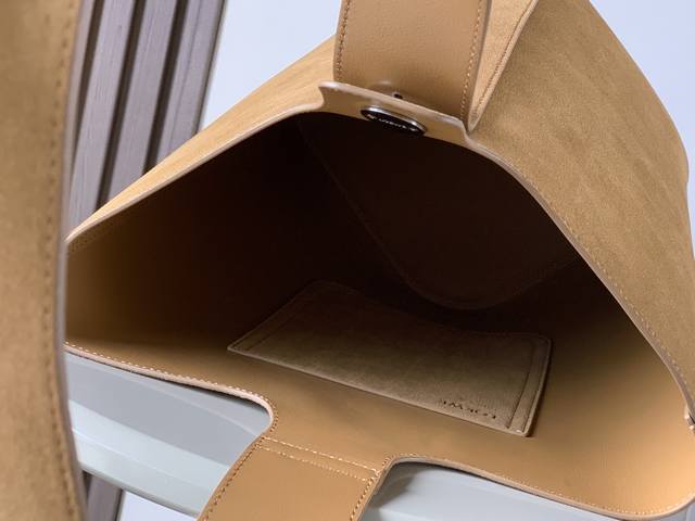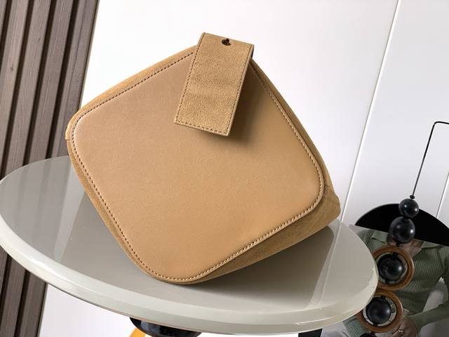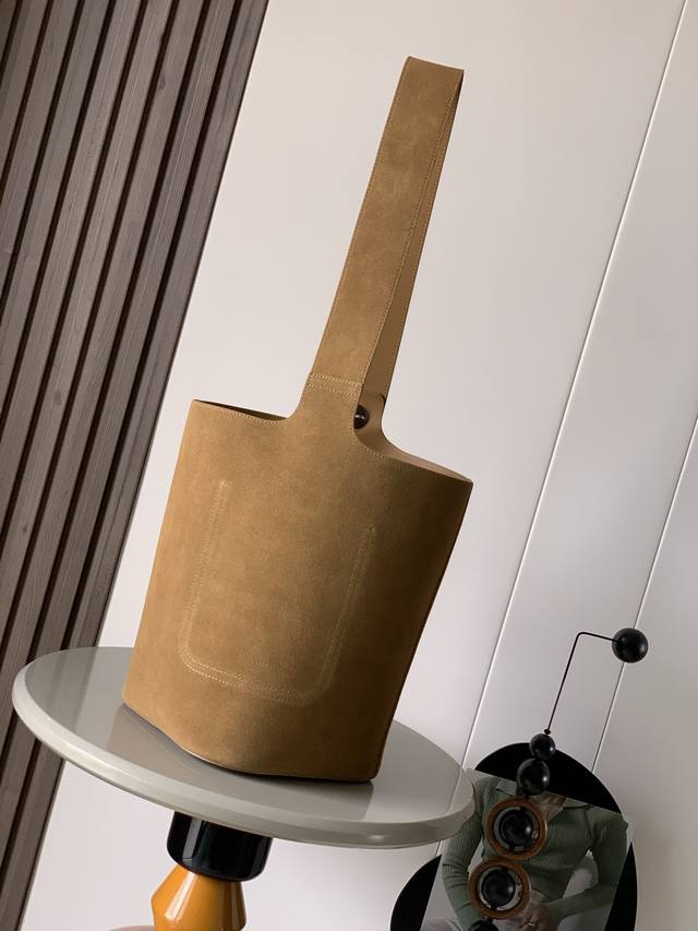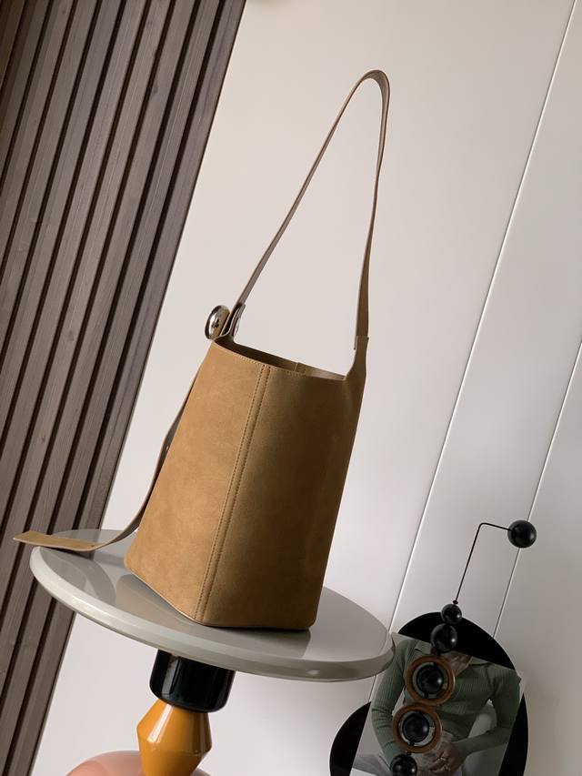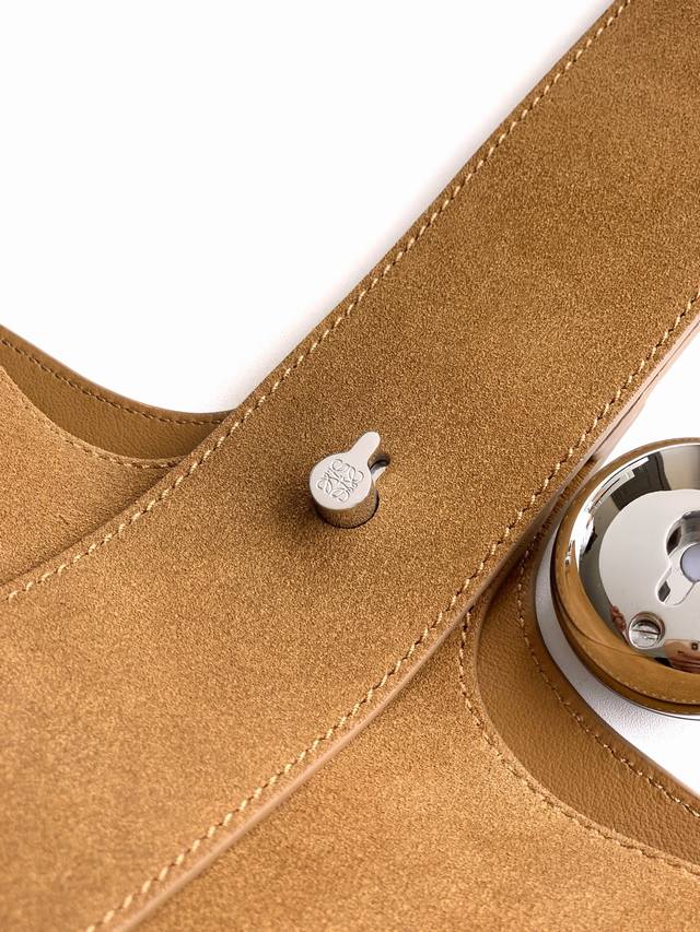 New Large Pebble Bucket Bag in Suede Cowhide Leather. The Pebble cleverly blends pure, minimalist lines with a striking design style to create a unique and innovative handbag design. The iconic Anagram engraved hardware combines decoration and practicality. The adjustable shoulder strap is suitable for multiple carrying methods, and the unique twisted structure complements subtle details. This large version is made of suede cowhide leather with a smooth Nappa leather interior. * Can be worn on the shoulder or crossbody * Adjustable shoulder strap * Magnetic snap closure * Interior cowhide leather pocket * Anagram engraved pebble pattern Size: 28cm