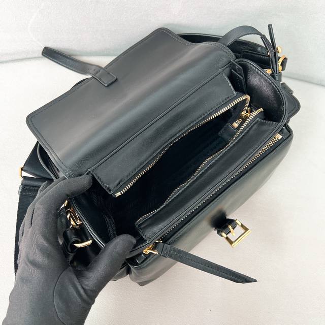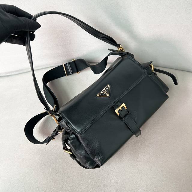 This handbag perfectly blends sophistication and functionality, crafted from imported lambskin. It features a soft silhouette and multiple pockets. The lightweight and practical design combines sporty and versatile elements, adorned with an enamel triangular metal logo and leather details. It comes with two detachable shoulder straps, offers ample capacity, and is simply perfect. Another timeless and popular style, the large size is unisex. Grab yours now! Length 30cm x Height 14cm x Base 10cm