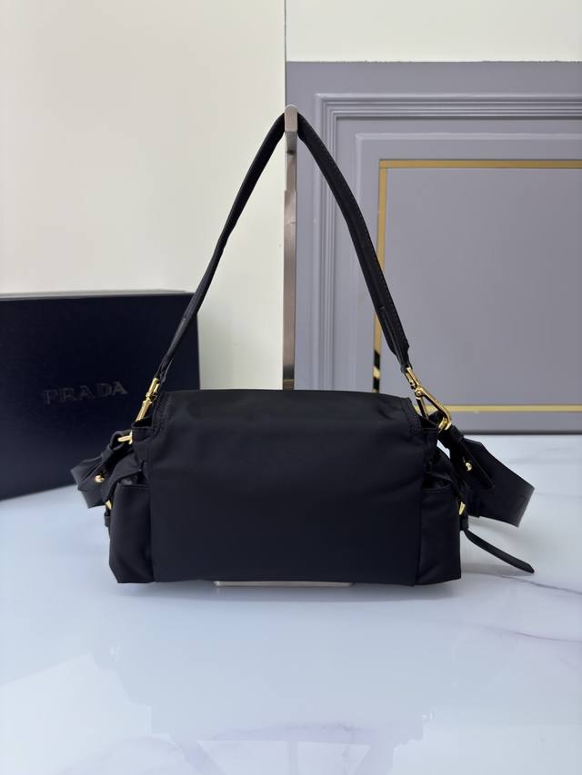 This handbag perfectly blends sophistication and functionality. Made from recycled nylon, it features a soft silhouette and multiple pockets. The lightweight and practical design combines sporty and versatile elements, adorned with an enamel triangular metal logo and leather details. It comes with two detachable shoulder straps, is spacious, and is simply perfect. Another timeless and popular style, the large size is unisex. Grab yours now!
