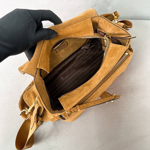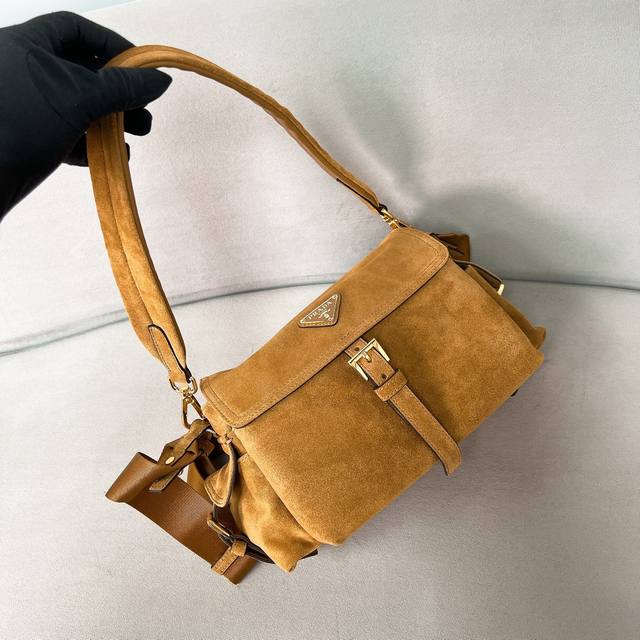 This handbag perfectly blends sophistication and functionality, featuring a soft silhouette crafted from imported suede and multiple pockets. The lightweight and practical design combines sporty and versatile elements, adorned with an enamel triangular metal logo and leather details. It comes with two detachable shoulder straps, a large capacity, and is simply perfect. Another timeless and popular style, the large size is unisex. Grab yours now!