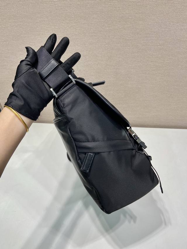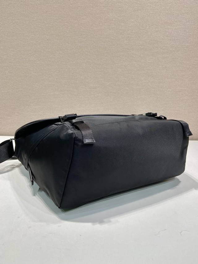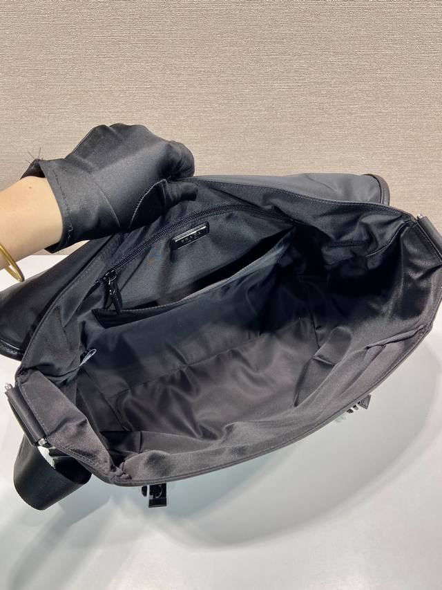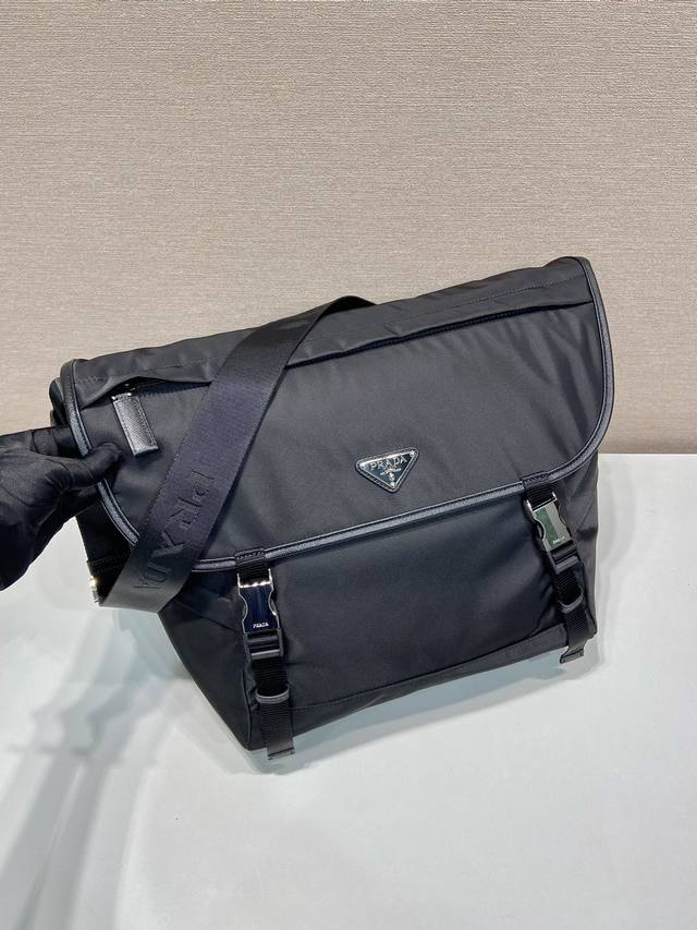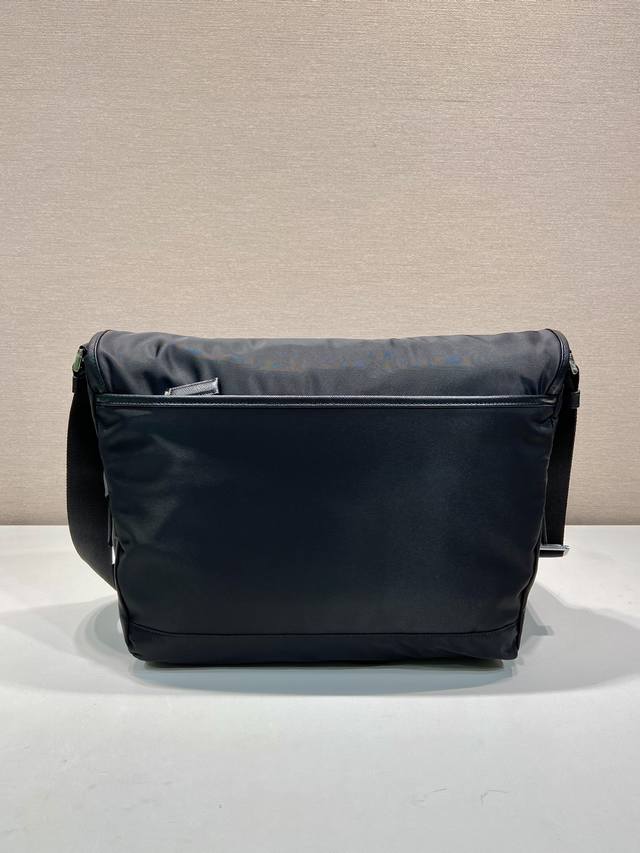 This messenger bag is designed with Re-Nylon recycled nylon fabric and contrasting calfskin leather. It features a flap and push-lock closure, three external zippered pockets, an internal zippered pocket, and a slip pocket. It has a large capacity and is another timeless bestseller. Handsome guys, grab one now