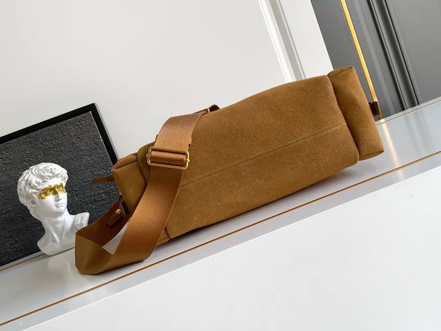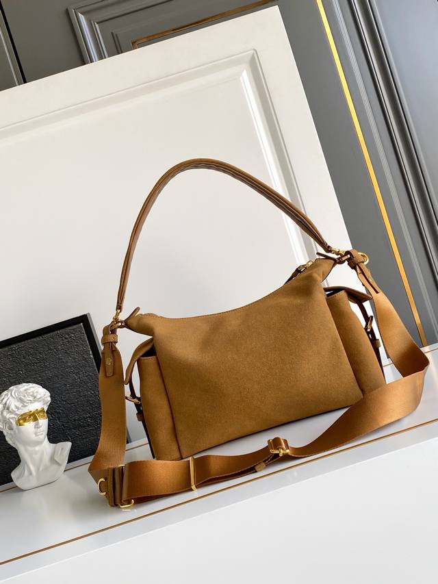 This explorer bag is crafted from imported suede, featuring a soft silhouette and multiple pockets. Lightweight and practical Re-Nylon emphasizes the design's versatility, while leather details and signature embellishments reflect P's handcrafted heritage. It comes with two detachable, adjustable woven logo shoulder straps. It boasts a large capacity and a very stylish look. Another timeless and popular style. A must-have!
