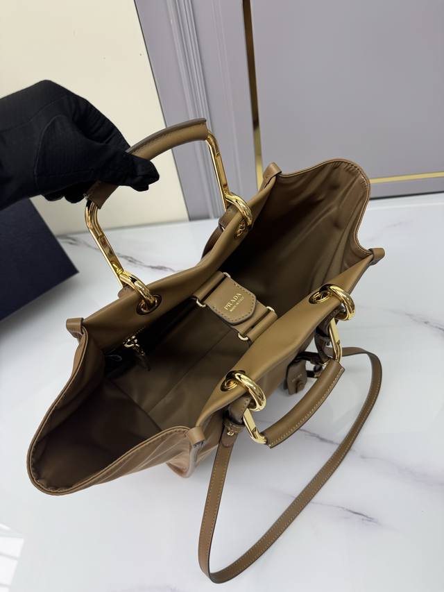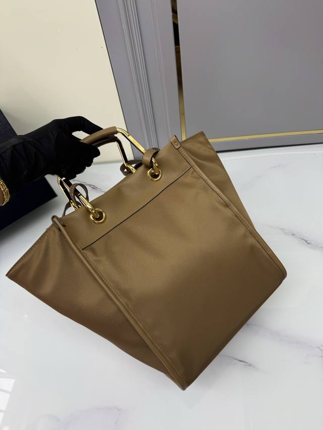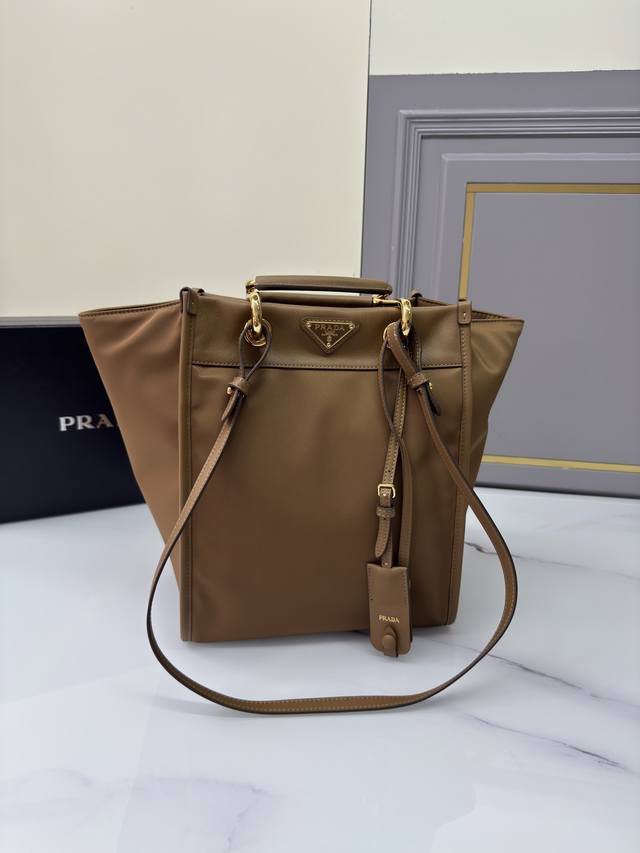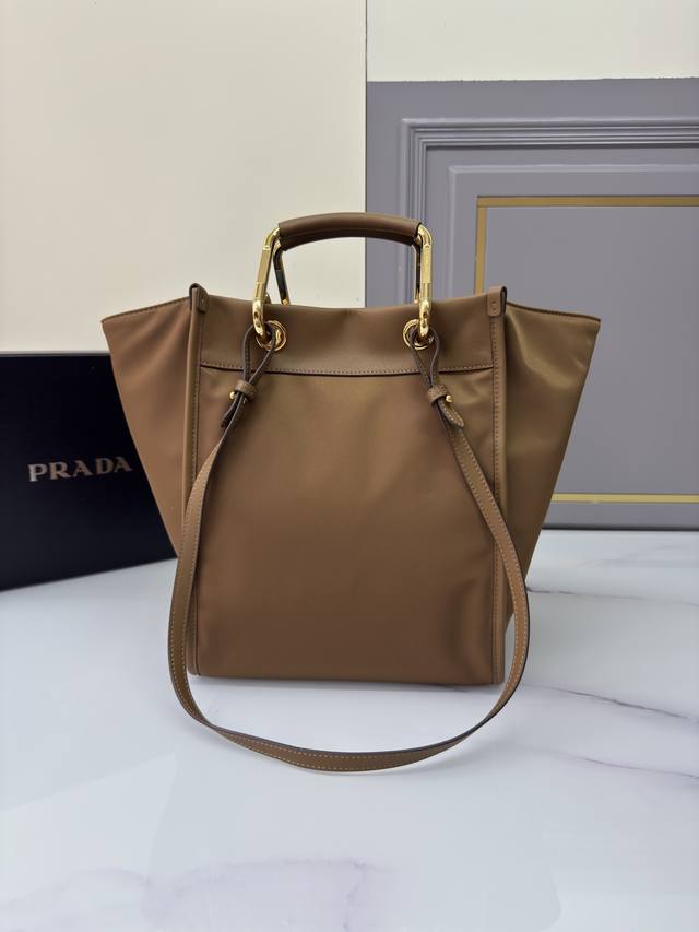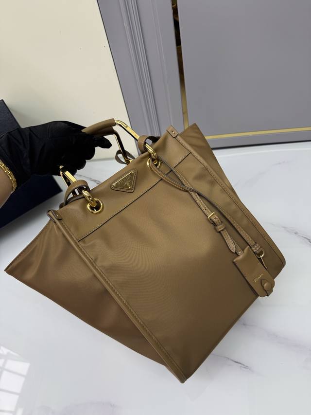 This tote bag features a stylish geometric shape, combining practical Re-Nylon recycled nylon with exquisite details. Versatile in style, it comes with metal and leather double handles, easily switching between a handbag and a shoulder bag. Adorned with the iconic enamel triangular metal logo. Large capacity, and a timeless must-have for everyone! Grab yours now! Length 23 x Height 28.5 x Base 15 cm