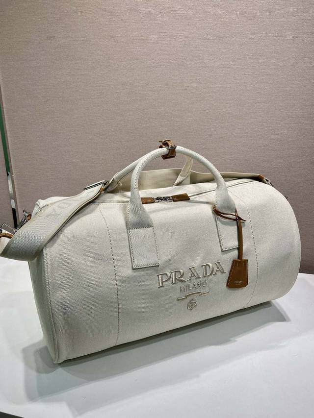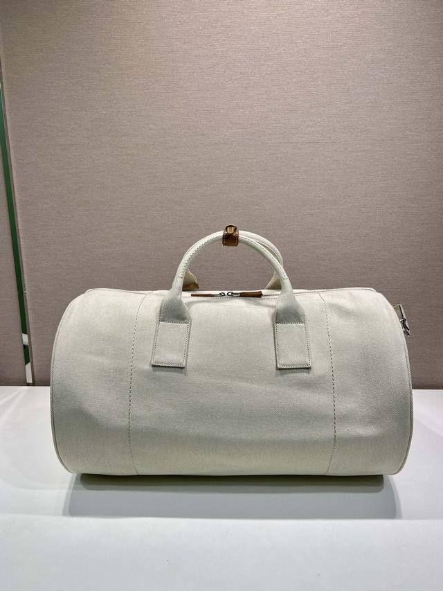 This canvas travel bag embodies sporty style with a lightweight design, combined with exquisite leather details. Spacious and versatile, it features a detachable shoulder strap and a tonal embroidered logo for unique details. Stylish and cool when worn, grab yours now!