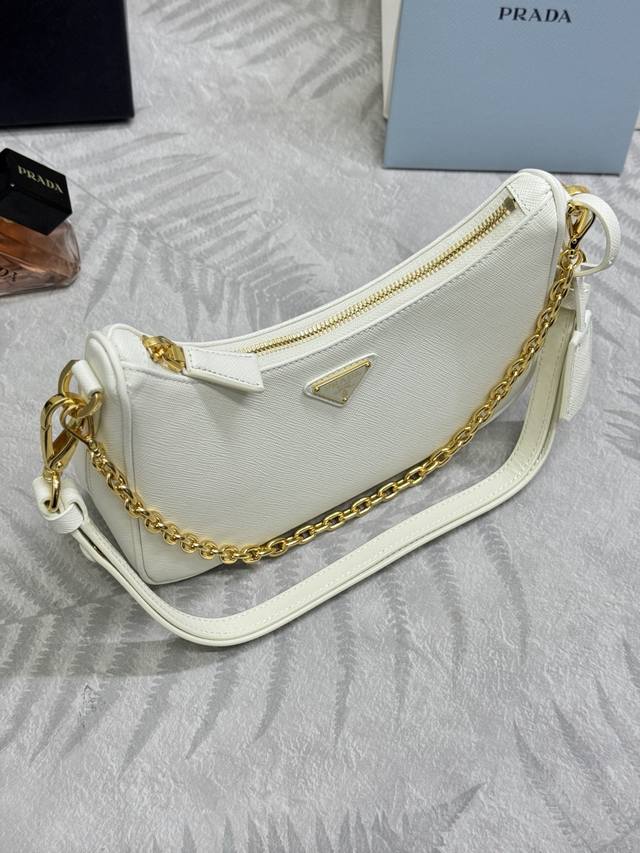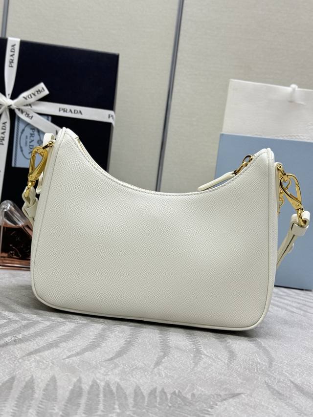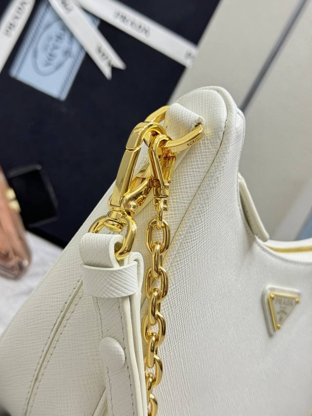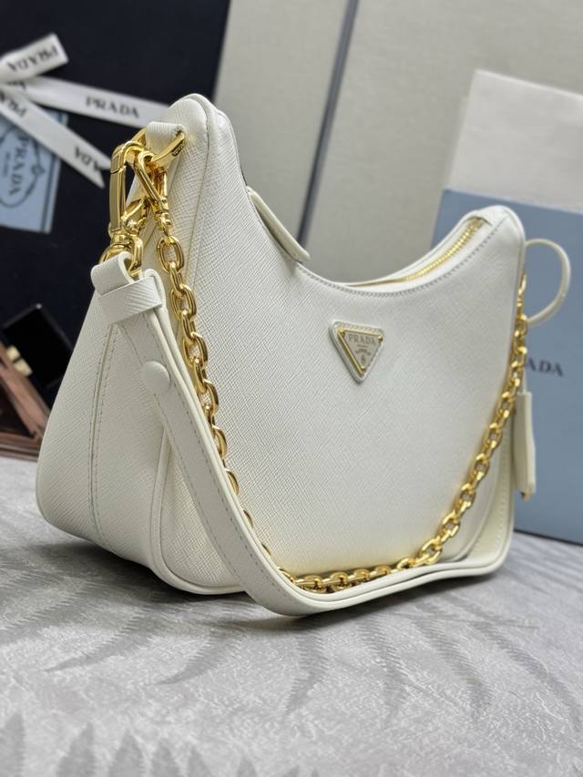 New upgraded Hobo1Bc204 with detachable cross-grain shoulder strap. This versatile handbag features clean lines and classic details, with a detachable chain and adjustable shoulder strap, allowing it to be carried by the shoulder, hand, or crossbody. Made of Saffiano leather, it's adorned with a distinctive enamel triangular metal logo. Another timeless and popular style, grab yours now! Dimensions: Length 22cm x Height 18cm x Base 6cm.