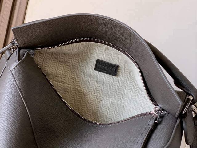 New version of the geometric bag 29cm Puzzle handbag~ Original imported cowhide leather. The popular geometric Puzzle handbag is the first tote bag launched by creative director Jonathan Ande for L0Ewe. Its rectangular shape and precise cutting techniques create the unique geometric lines of the Puzzle. The simple and elegant geometric design is stylish with a cool edge, suitable for both sweet and edgy looks. Made of original calfskin, the bag retains its shape and feels incredibly comfortable. Wearing it instantly elevates your style. The structured shape also boasts a surprisingly large capacity, making it a must-have item that you can never have enough of! Size: 29cm~19cm~12cm Style Number: 9312 Color: Gray-brown-pey