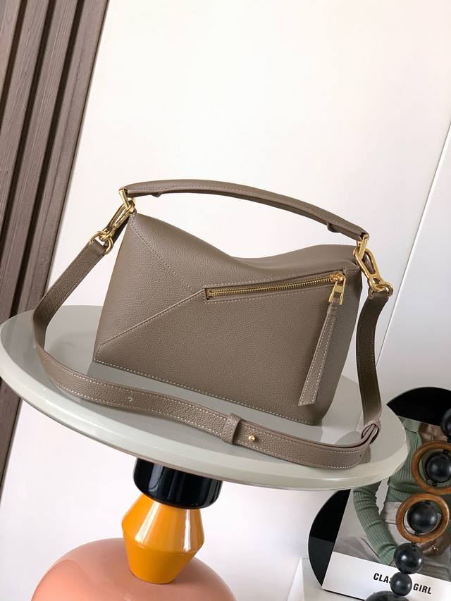 New version of the geometric Puzzle bag, small size 24cm! Made with original imported pebbled calfskin. The popular geometric Puzzle bag from L'Or