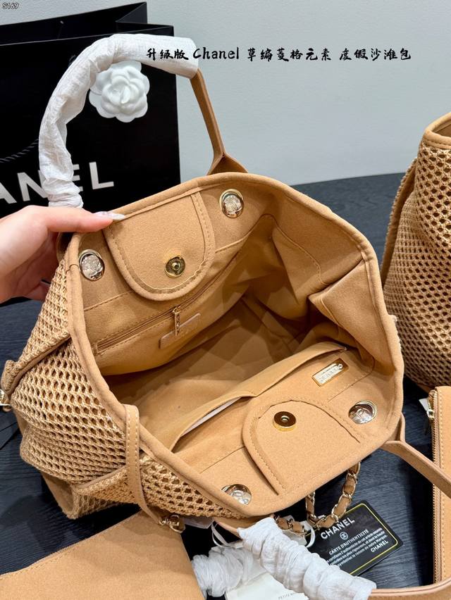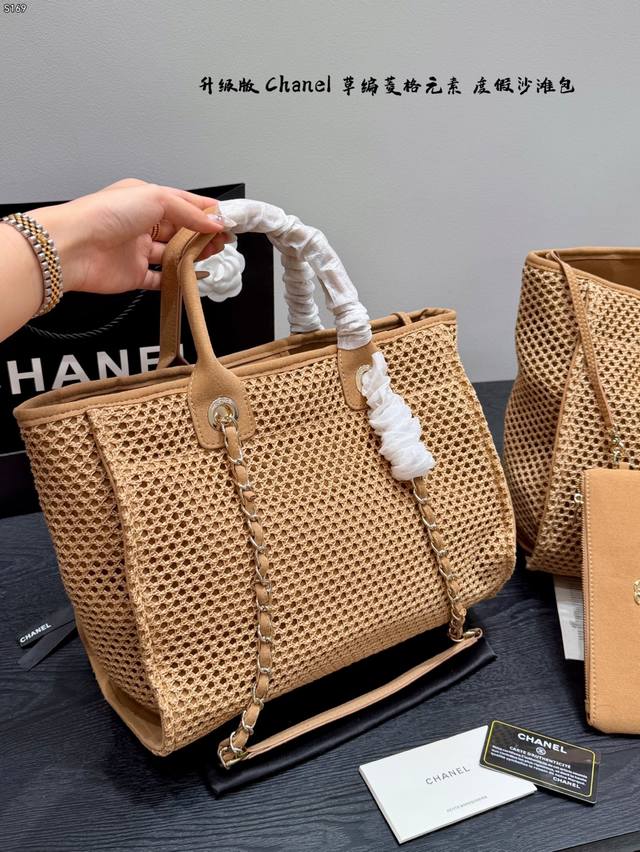 The "straw quilted" element is the biggest highlight of this new bag. The classic quilted pattern is remade with the iconic straw material of the resort style, paired with leather piping and double C metal logo, balancing sophistication and laziness!
