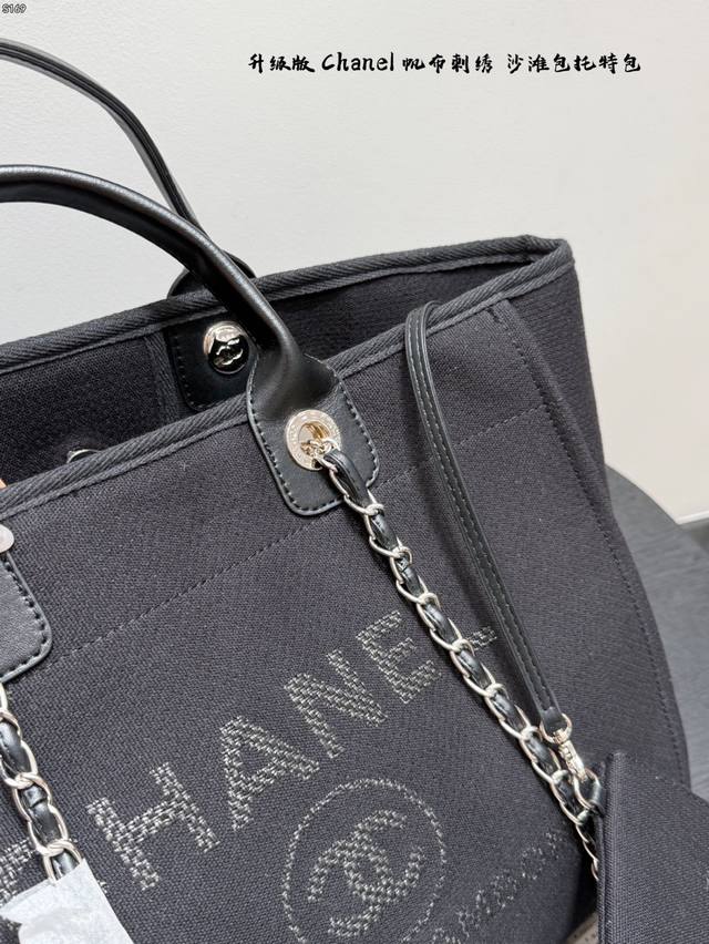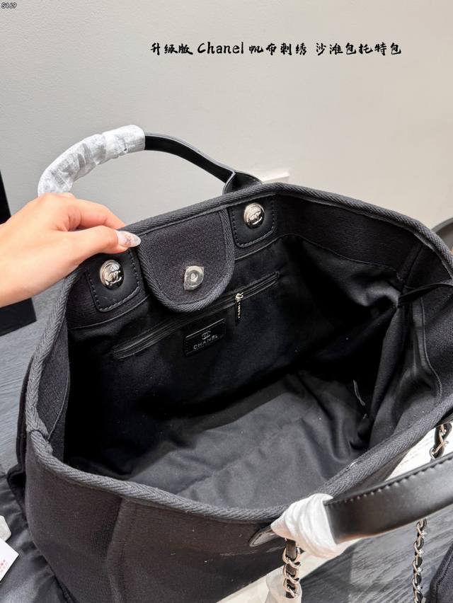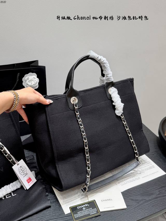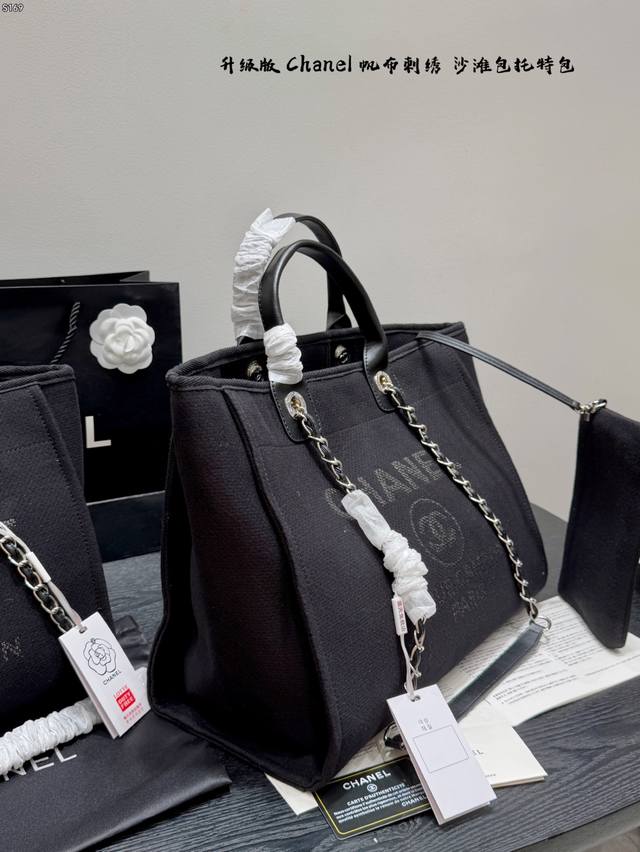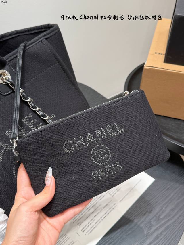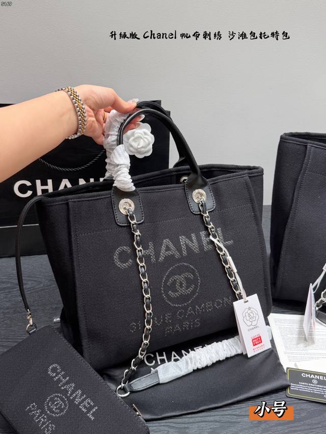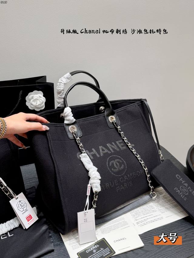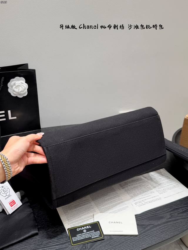 No box, upgraded version! Size 39.30 (Large), 33.27 (Small). Chanel canvas beach bag. Exquisite and elegant. I love the relaxed feel of Chanel beach bags. The three-dimensional yet understated letter embroidery. It can fit a laptop, making it suitable for both long and short trips. The color really makes me feel good .