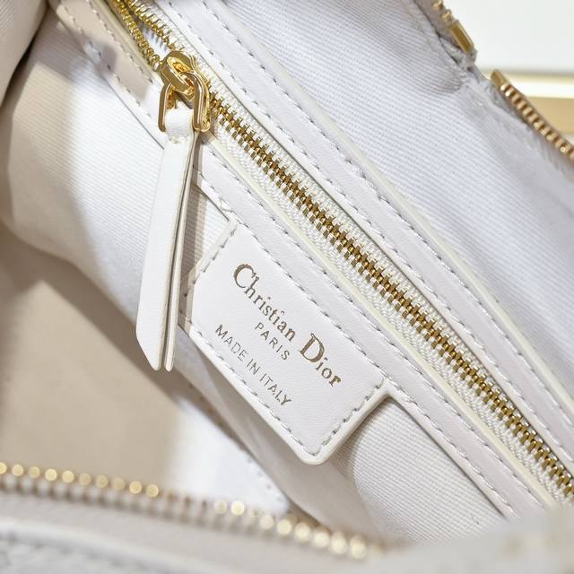 Off-white Small. This Dior Voyage handbag is a new addition to the 2026 Early Spring Ready-to-Wear collection, blending soft lines and elegant details to create a harmonious silhouette. Crafted from black pleated calfskin, it features flat, oversized cannage stitching, a fresh interpretation of Dior's classic pattern. The soft silhouette is enhanced by vintage gold-finished DIOR charms and meticulously crafted leather accents, giving it a more structured look. The main compartment features a secure and practical two-way zip closure. The medium size, with a top handle and adjustable buckle, can be carried on the shoulder, making it an ideal companion for everyday wear. Small size: 22 x 15 x 9.5 cm (Length x Height x Width) M2845; Large size: 28 x 18 x 12 cm (Length x Height x Width) M2846.