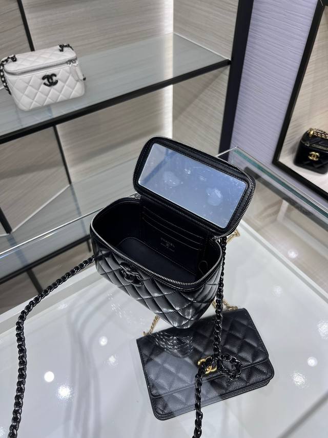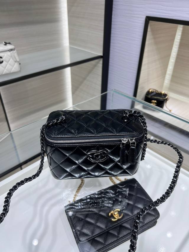 Ohanel 24S Latest Rectangular Box Bag/Makeup Bag, Black Pearl Hardware, Black Wa