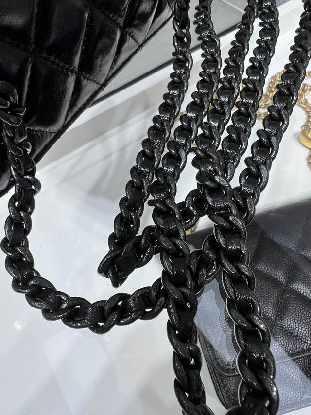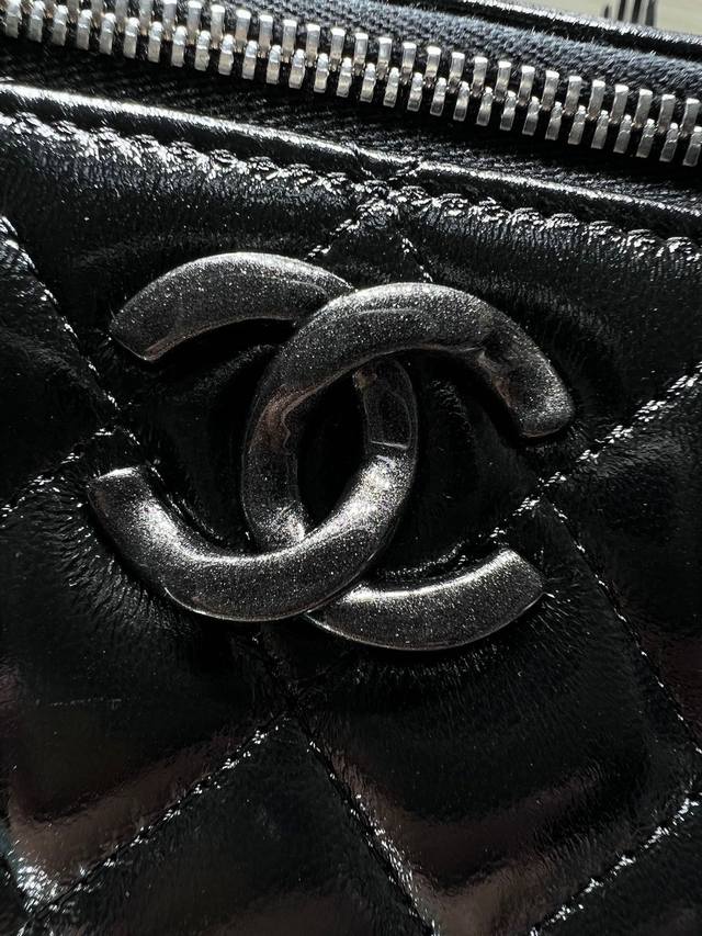 Ohanel 24S Latest Rectangular Box Bag/Makeup Bag, Black Pearl Hardware, Black Warrior Style, Oil-Waxed Lambskin, Ap5080Y