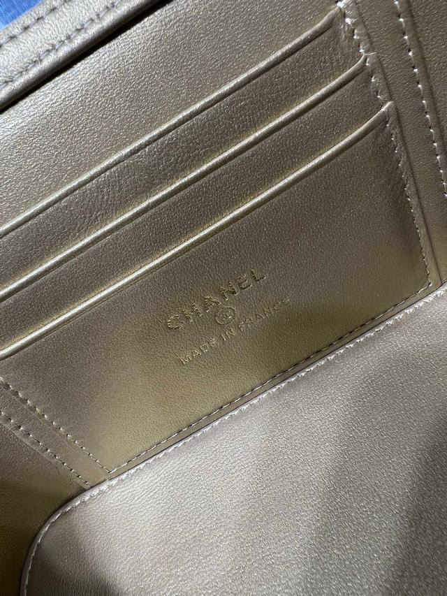 Ohanel 25B New Long Makeup Box with Double C Buckle, Adjustable Chain, Imported Sheepskin, Ap5120Y, Size 17X9.5X8 mm.