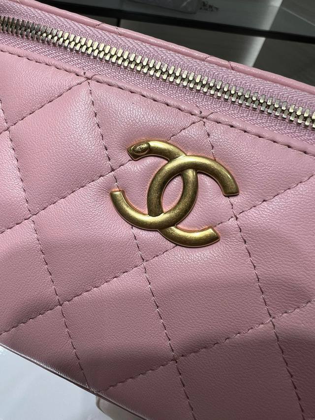 Ohanel 25B New Long Makeup Box with Double C Buckle, Adjustable Chain, Imported Sheepskin, Ap5120Y, Size 17X9.5X8 mm.