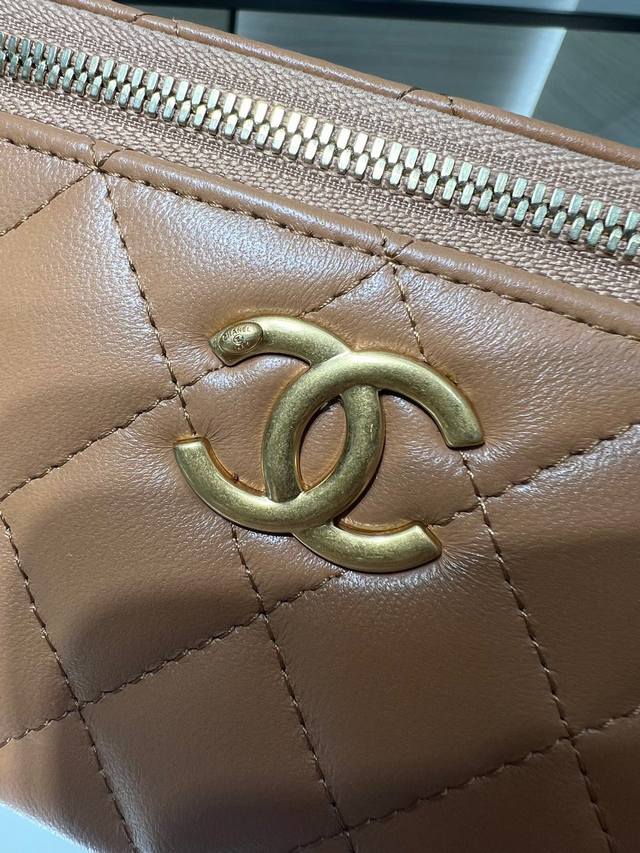 Ohanel 25B New Long Makeup Box with Double C Buckle, Adjustable Chain, Imported Sheepskin, Ap5120Y, Size 17X9.5X8 mm.