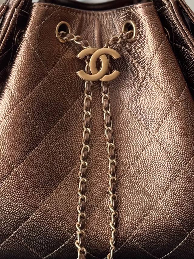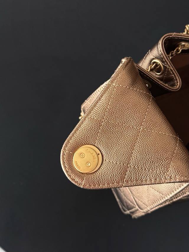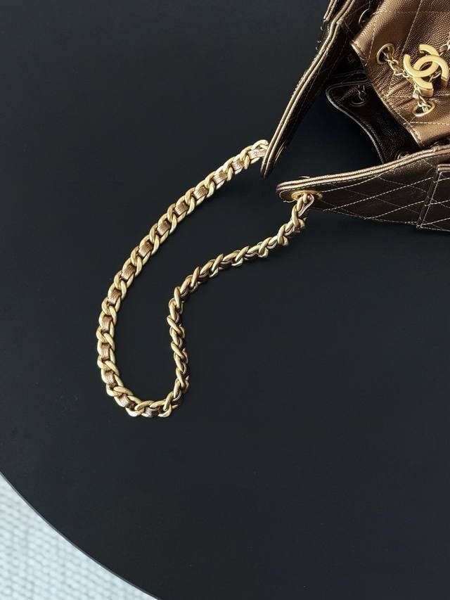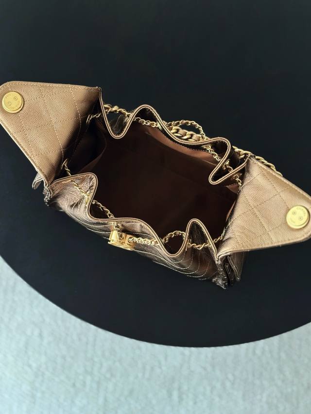Retro gold coin button drawstring bucket bag + diamond pattern + retro black and gold