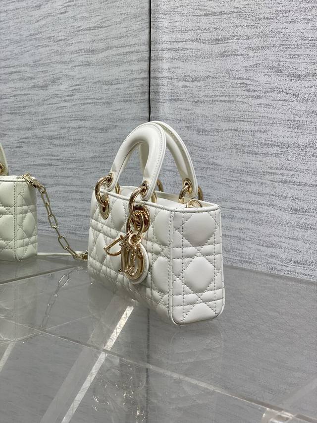 Original factory packaging included. White, in stock. D-Joy's latest Mini series. For those who think the Micro is too small and the Small is too big, look here! The new Mini size can even fit a large phone. This size is more refined and is poised to be a hit. The bag comes with two shoulder straps for multiple carrying options. It looks beautiful and stylish. The classic diamond pattern design, paired with soft sheepskin, is elegant and fashionable. A must-have for everyday wear. Size: 19*5.5*10.5Cm