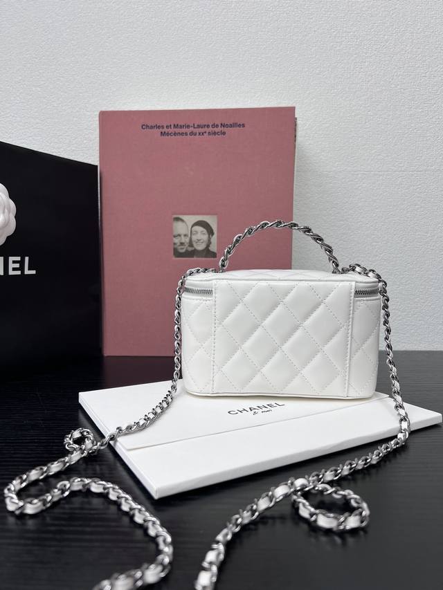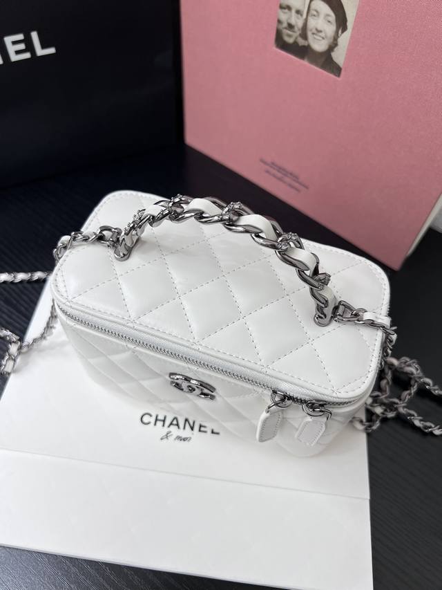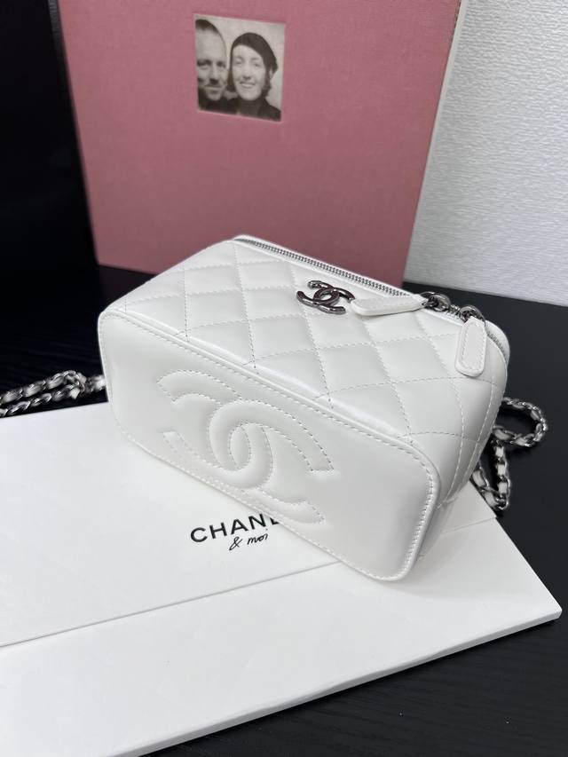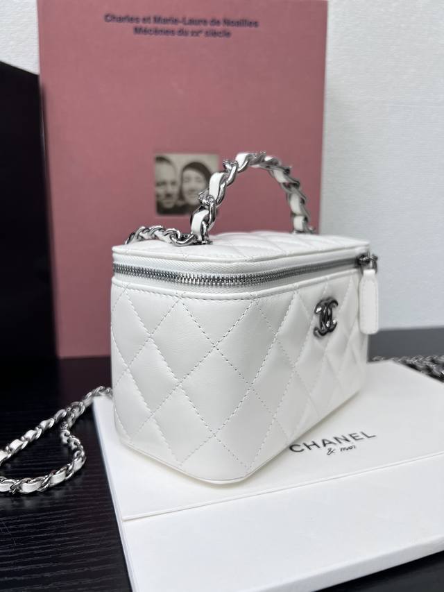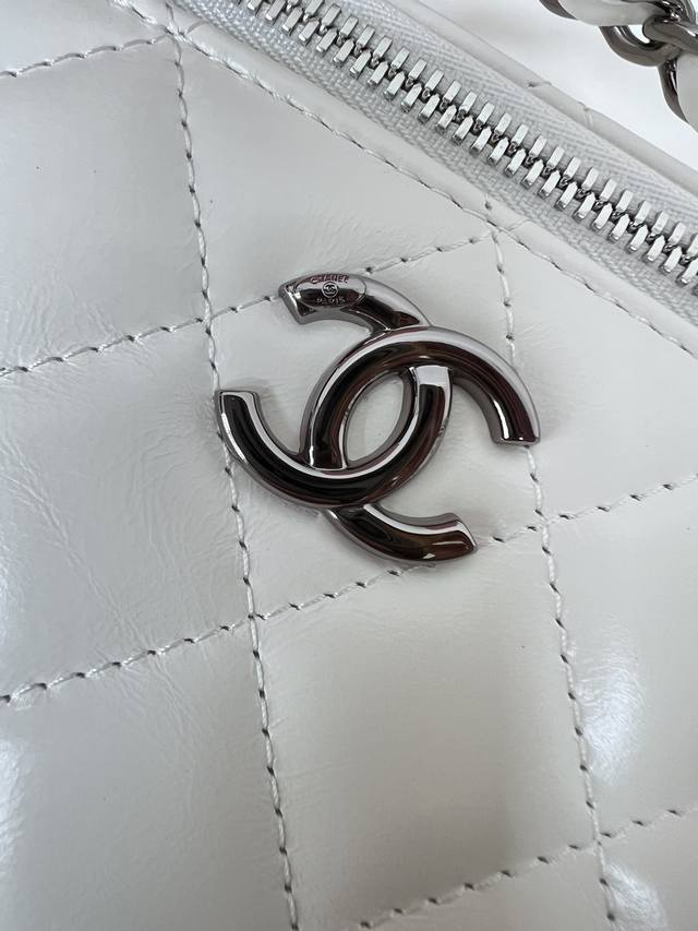 Chanel 25K lambskin bowling bag. The pebbled leather bowling bag with brushed ha