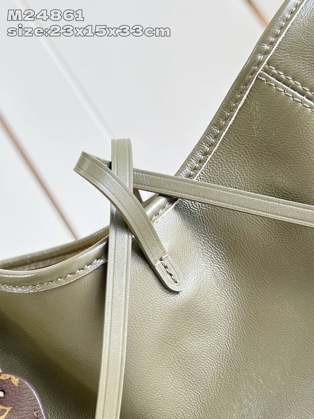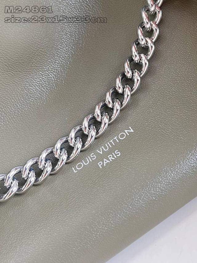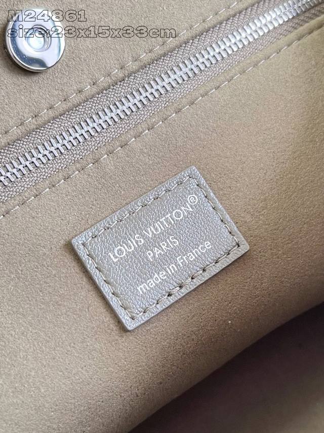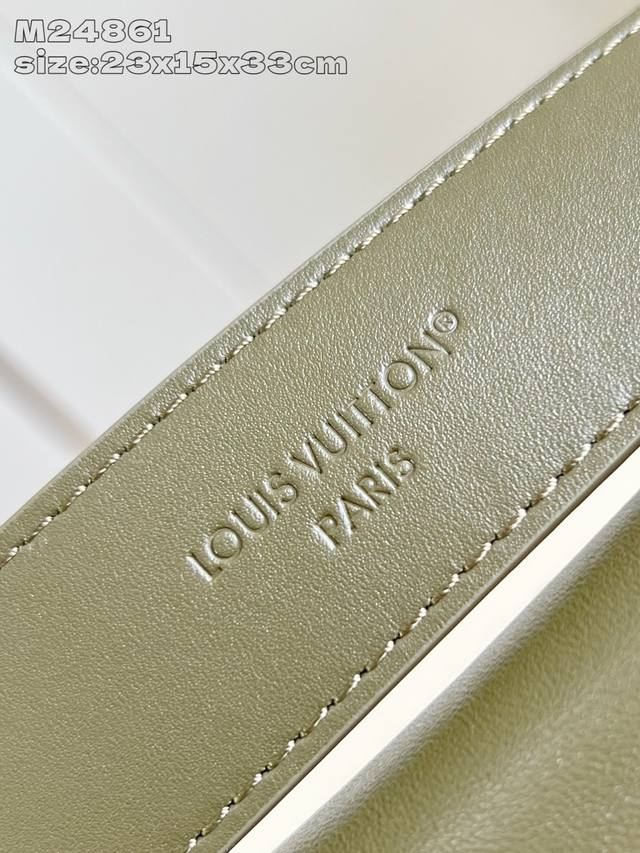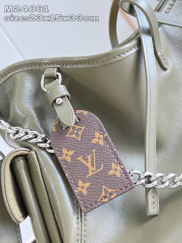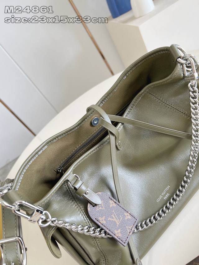 Exclusive Real Shot M24861 Green Book Carryall Cargo Vibe Small Handbag. This small handbag is made of lambskin leather with an elegant, subdued hue. Details include a drawstring, lustrous metal hardware, and a detachable chain, making it easy to integrate into any new season's look. The Monogram branding speaks volumes about the brand's exquisite craftsmanship. 23 x 15 x 33.5 cm (H x W x Length)