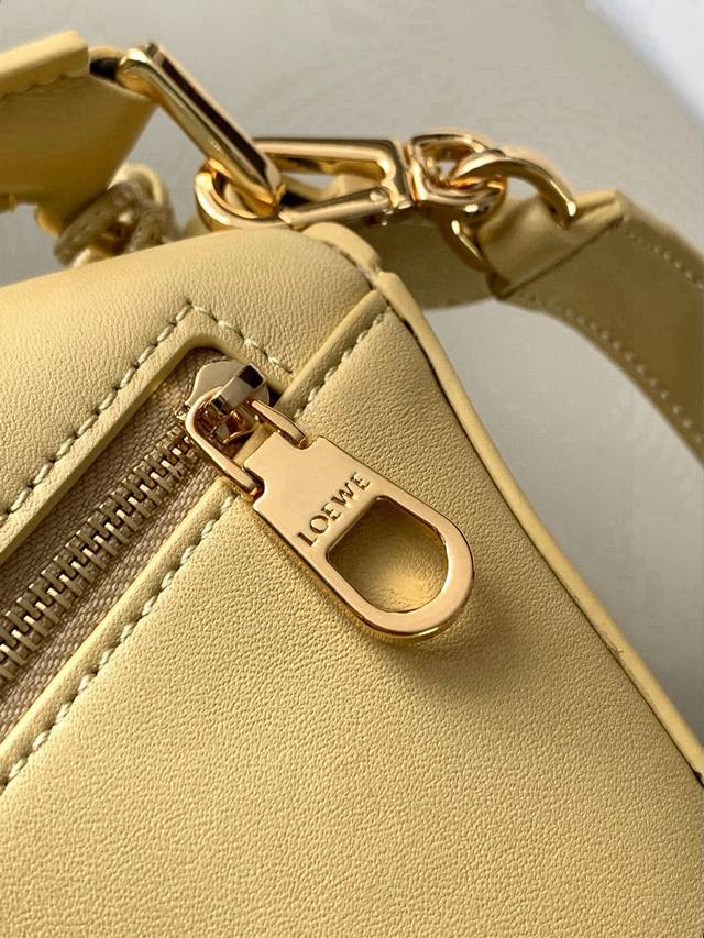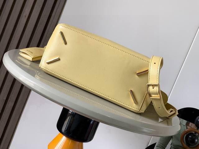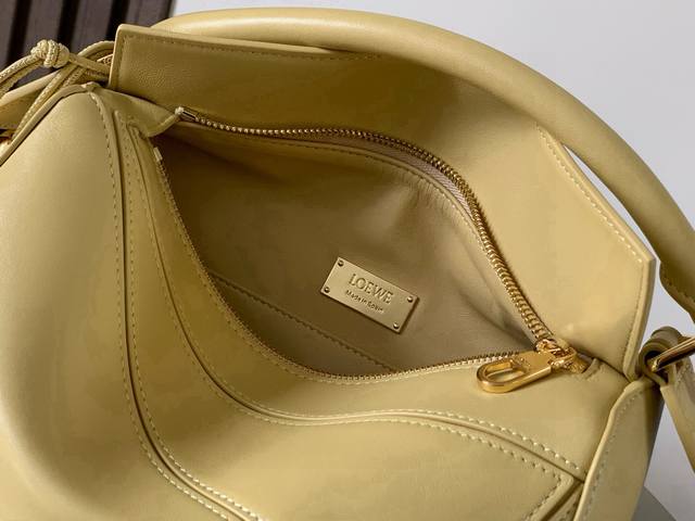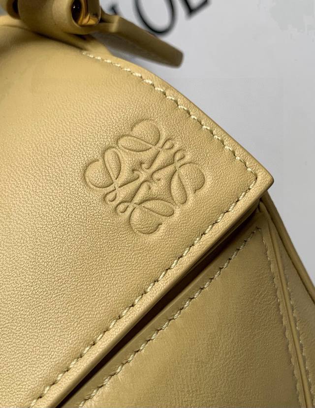 Original Leather Featherlight Puzzle Handbag, New Version Geometric Bag in Small Nappa Calfskin. Made from original imported Nappa calfskin, this bag features a unique geometric design with a rectangular shape. The soft, lightweight Nappa leather gives the bag a relaxed and effortless style. *Can be worn on the shoulder, crossbody, or carried by hand.* Detachable and adjustable shoulder strap with a rotating clasp.* Zipper closure with hinged zipper pull.* One external zippered back pocket and one internal slip pocket.* Detachable, featuring a hidden pocket and balloon dice.* Rectangular metal feet.* This smaller version is made from soft Nappa calfskin.* The small Puzzle can hold, for example, a large wallet, all-size phones, and sunglasses. Can be carried crossbody, shoulder, by hand, or with the top handle.* Detachable.* Color: Butter.* Style Number: 9096.* Size: 24cm