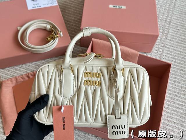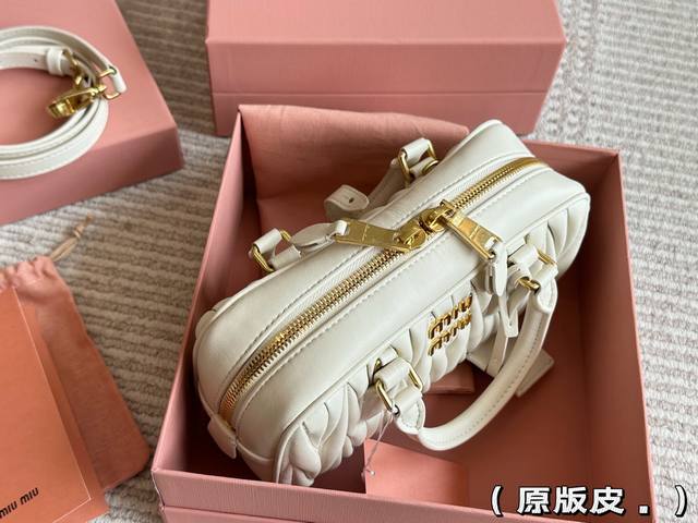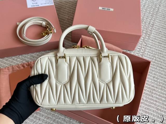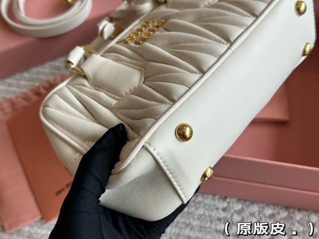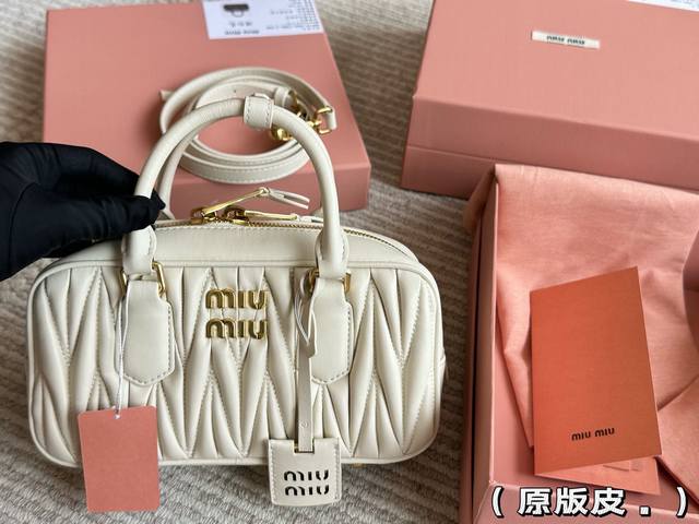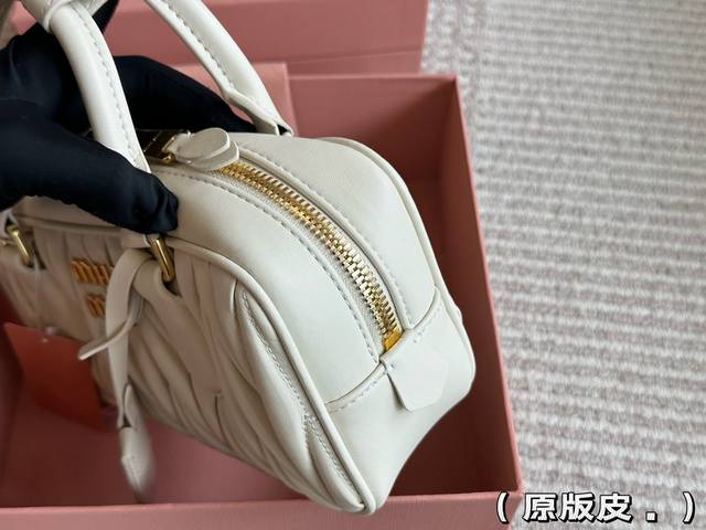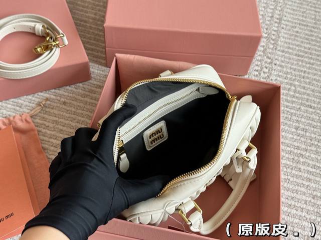 Original leather full packaging. Size: 23*12cm. Miumiu bowling briefcase. The bag has just the right amount of sweetness! It's hard not to love it! Can be carried by hand or worn crossbody. Definitely not a small, useless bag; it has plenty of capacity! Makes you look like a Miumiu princess!