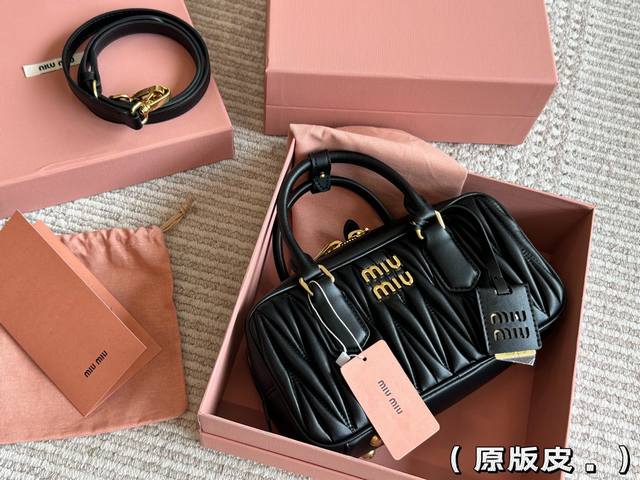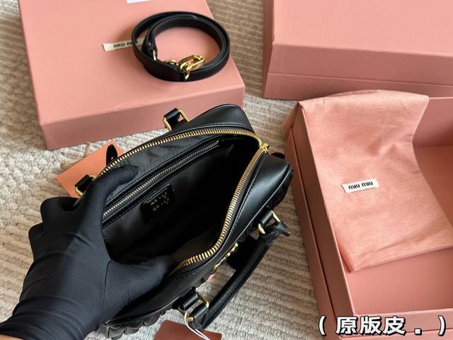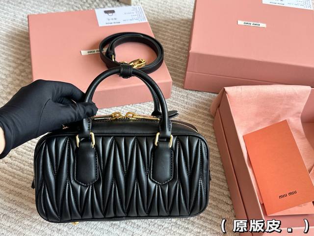 Original leather full packaging. Size: 23*12cm. Miumiu bowling briefcase. The bag has just the right amount of sweetness! It's hard not to love it! Can be carried by hand or worn crossbody. Definitely not a small, useless bag; it has plenty of capacity! Makes you look like a Miumiu princess!