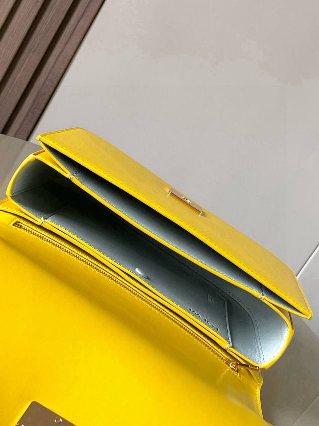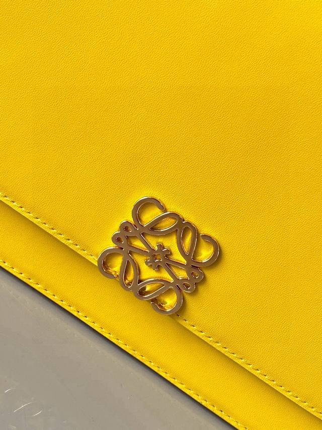 Original Leather Goya Silk Calfskin Handbag. The Goya is a compact bag, perfectly organized for its size. The simple Anagram closure and vibrant colors contrast sharply with its sharp graphic minimalism. It is handcrafted from exquisite silk calfskin with a soft Nappa lambskin lining. It is the ultimate expression of craftsmanship. * Shoulder carry * Adjustable shoulder strap * Magnetic closure * Four interior pockets, including one zip pocket and one snap pocket * One exterior pocket * Nappa lambskin lining * Shoulder strap adorned with a metallic embossed Loewe logo. Lining: Lambskin/Cowskin Dimensions: 22.5cm