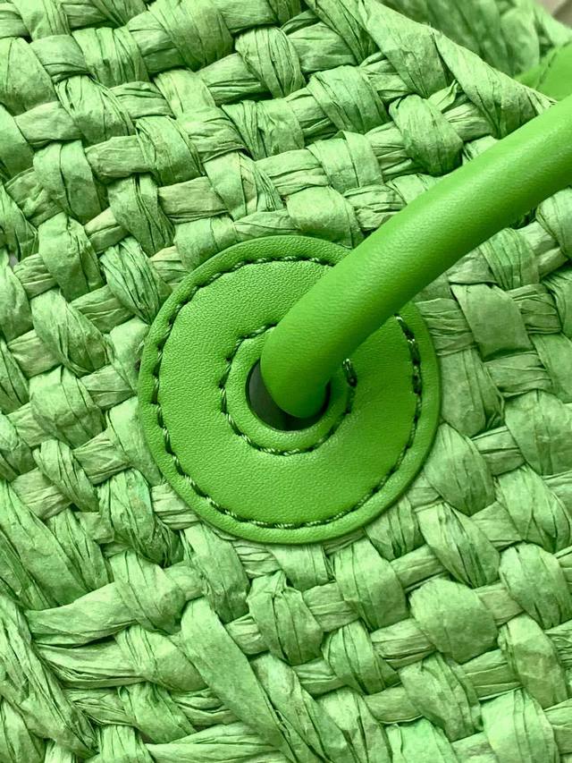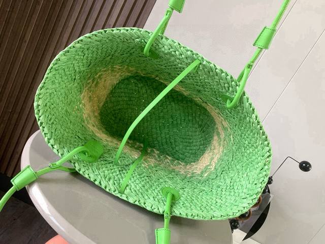 Large Illaka Palm Fiber and Cowhide Anagram Basket Handbag. A classic basket handbag with a classic hand-woven body, tubular cowhide leather strap, and a cowhide Anagram embossed patch. This smaller version is made from Illaka palm, which is grown, harvested, and dried in Colombia, and then woven by female artisans organized by Corporacion Oficio Y Arte, guided by fair trade principles. Due to its handmade nature, the size may vary slightly, making each purchase unique! A must-have woven handbag for summer. If you had to choose one bag as a summer essential, it would definitely be a woven bag. It's suitable for everyday wear and weekend outings, instantly elevating the summer vibe. The Anagram Basket handbag features a classic hand-woven basket design. Effortlessly stylish for a vacation look. A summer essential.