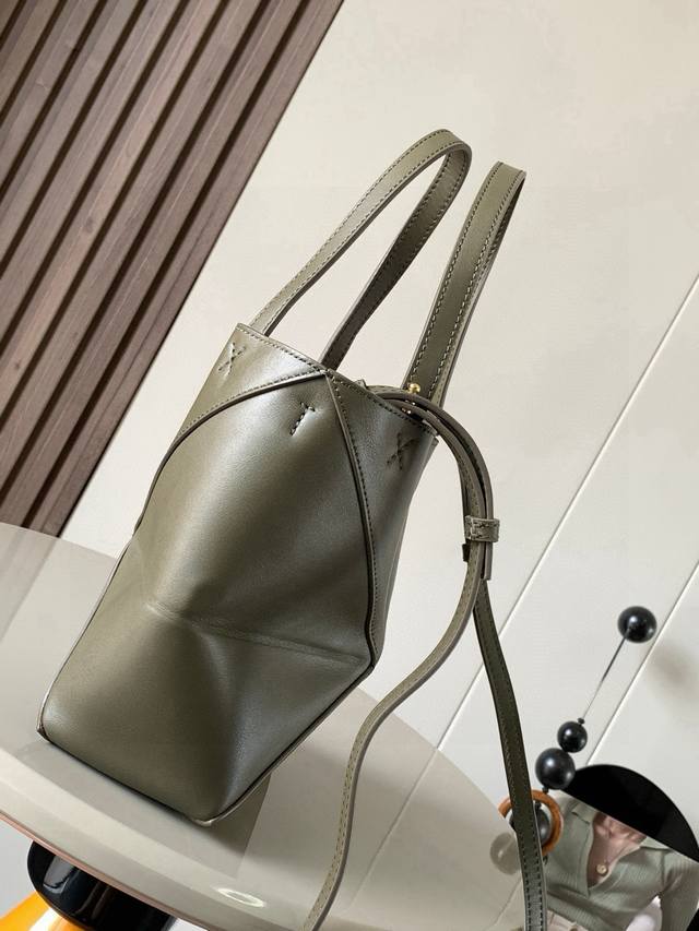 New Glossy Cow Leather Mini Puzzle Fold Handbag Plays with Geometric Shapes Again. It's been a long time since I've seen such a practical and stylish tote bag. This one continues the geometric aesthetics of the Puzzle series, inspired by origami bags , allowing the Puzzle Fold Tote to switch effortlessly between three-dimensional and flat shapes. The leather is exquisitely glossy, and the bag itself is ultra-lightweight and foldable. The Puzzle Fold handbag draws inspiration from the geometric lines of the brand's classic handbag series, using creative ingenuity to reinterpret it as a stylish tote bag. It can be completely folded, making it a perfect travel companion. This mini version is crafted from soft, glossy cow leather.