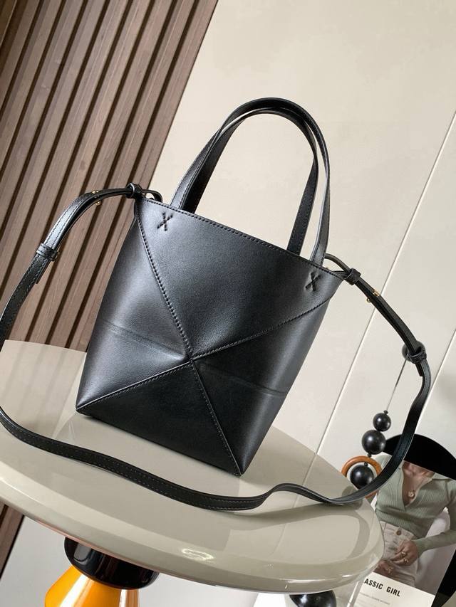 New Glossy Cow Leather Mini Puzzle Fold Handbag Plays with Geometric Shapes Again. It's been a long time since I've seen such a practical and stylish tote bag. This one continues the geometric aesthetics of the Puzzle series, inspired by origami bags, allowing the Puzzle Fold Tote to switch effortlessly between three-dimensional and flat shapes. The leather is exquisitely glossy, and the bag itself is ultra-lightweight and foldable. The Puzzle Fold handbag draws inspiration from the geometric lines of the brand's classic handbag series, using creative ingenuity to reinterpret it as a stylish tote bag. It can be completely folded, making it a perfect travel companion. This mini version is crafted from soft, glossy cow leather.