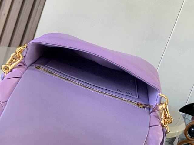 Original Leather Puffer Goya Handbag. Inspired by the Goya aesthetic, the Puffer Goya brings a new sensory and tactile dimension through its glossy Nappa lamb leather with goose feather lining. It features a detachable and adjustable metal donut chain and a detachable leather strap. This version is crafted from pleated lamb leather through cutting, stitching, and hand-weaving. * Shoulder or hand carry * Magnetic closure * This handbag features a detachable chain and a leather strap * One main compartment, one zip pocket, and one slip pocket * Nappa lamb leather lining. Dimensions: 23cm