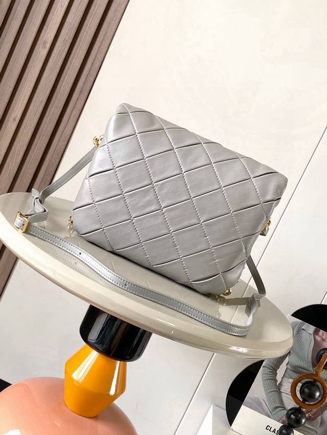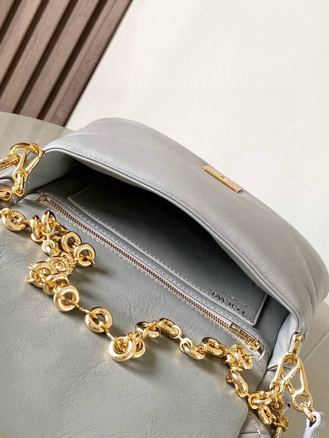 Original Leather Puffer Goya Handbag. Inspired by the Goya aesthetic, the Puffer Goya brings a new sensory and tactile dimension through its glossy Nappa lamb leather with goose feather lining. It features a detachable and adjustable metal donut chain and a detachable leather strap. This version is crafted from pleated lamb leather through cutting, stitching, and hand-weaving. * Shoulder or hand carry * Magnetic closure * This handbag features a detachable chain and a leather strap * One main compartment, one zip pocket, and one slip pocket * Nappa lamb leather lining. Dimensions: 23cm