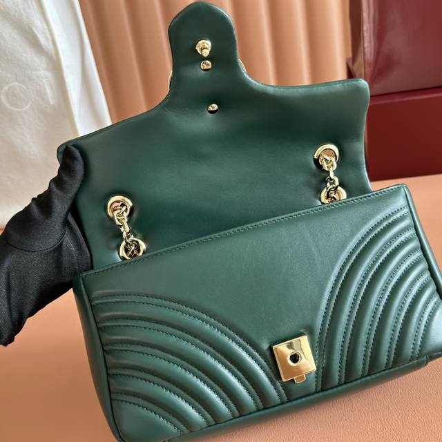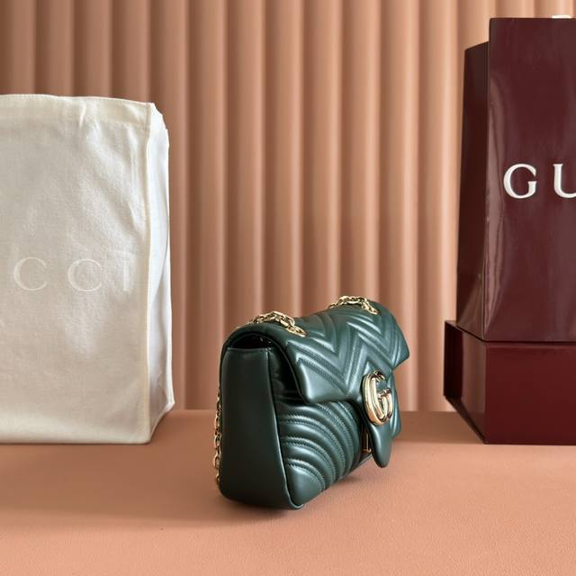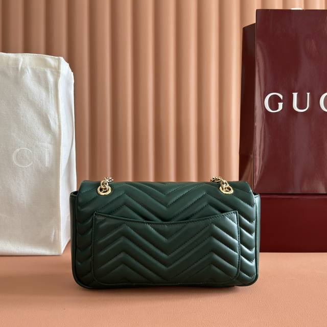 Original leather with full boutique packaging. The iconic GG Marmont series seamlessly blends double G styling hardware and a faceted chain strap, crafted from supple leather to create a softly contoured shape. A clean, minimalist back pocket enhances the practicality of the medium and large sizes. Black V-shaped Matelass