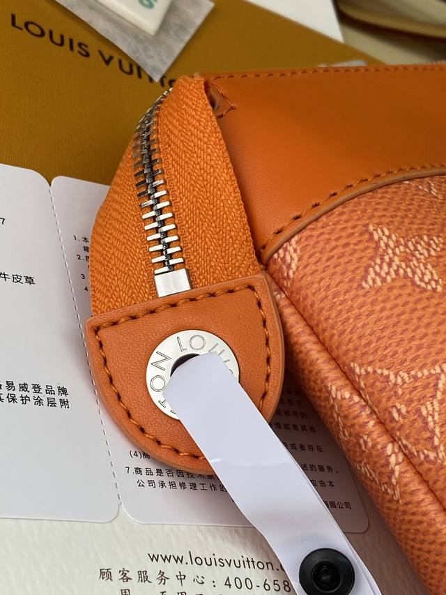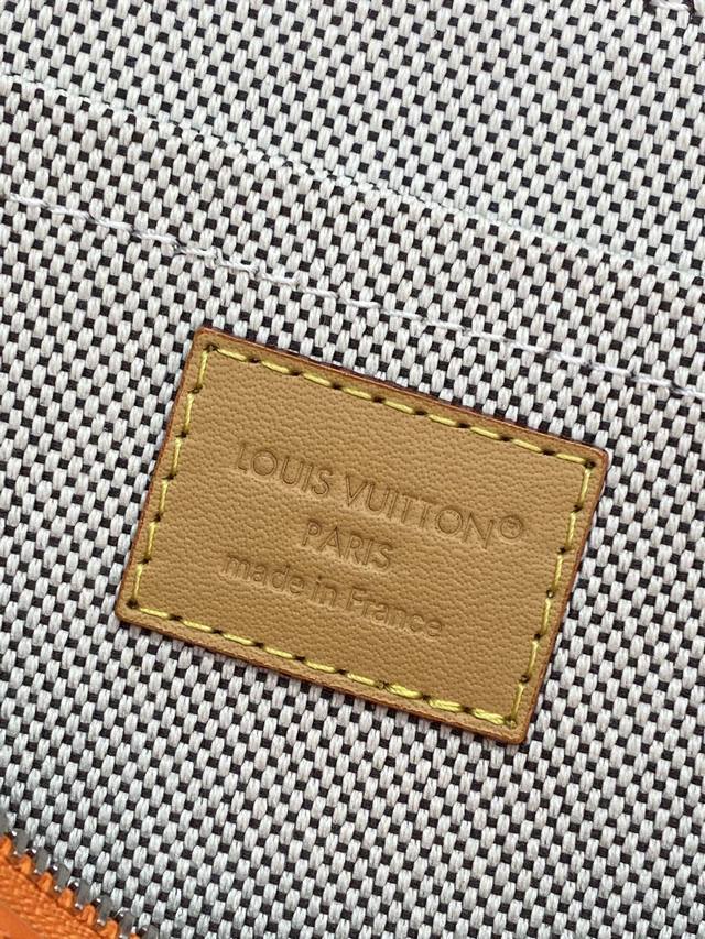 upgraded version M12665 Orange! Pochette Voyage Souple clutch. The Pochette Voyage Souple clutch is crafted from soft Monogram Eclipse coated canvas, with rounded strokes outlining the classic Pochette Voyage clutch lines for a comfortable carrying experience. The slim design features a zippered compartment and a magnetic snap back pocket. 32 x 21 x 8 cm (Length x Height x Width).