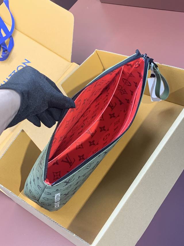upgraded version M82800 green! Pochette Voyage Souple clutch. The Pochette Voyage Souple clutch is crafted from soft Monogram Eclipse coated canvas, with rounded strokes outlining the classic Pochette Voyage clutch lines for a comfortable carrying experience. The slim design features a zippered compartment and a magnetic snap back pocket. 32 x 21 x 8 cm (Length x Height x Width).