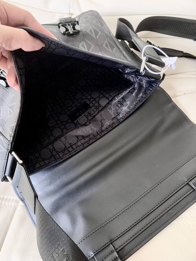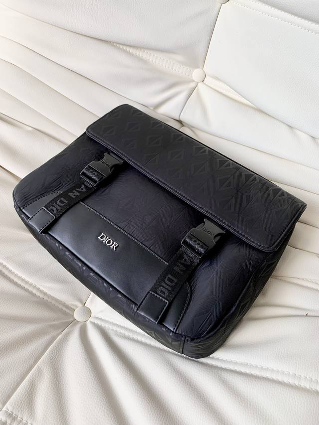 Original Nappa calfskin Dior bag, size: 31 x 21 x 8. This Dior Explorer handbag draws inspiration from the timeless messenger bag's iconic logo, reinterpreting it in a haute couture style. Crafted from the signature beige and black Oblique print jacquard fabric, it features multiple logos and a "Dior" patch on the sides for added sophistication. It has a flap closure with a zip pocket, and the main compartment can hold various everyday essentials. Practical design, black jacquard fabric, Oblique print, front metal-coated brass "Dior" logo, "Dior" patch on the sides, "Dior" embossed logo on the interior, "Christian Dior" logo, flap closure with "Dior" logo buckle, adjustable "Christian Dior" logo jacquard shoulder strap, zip pocket below the front flap, padded mesh back with "Dior" logo, color: black.