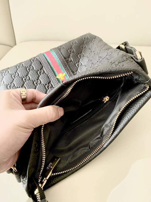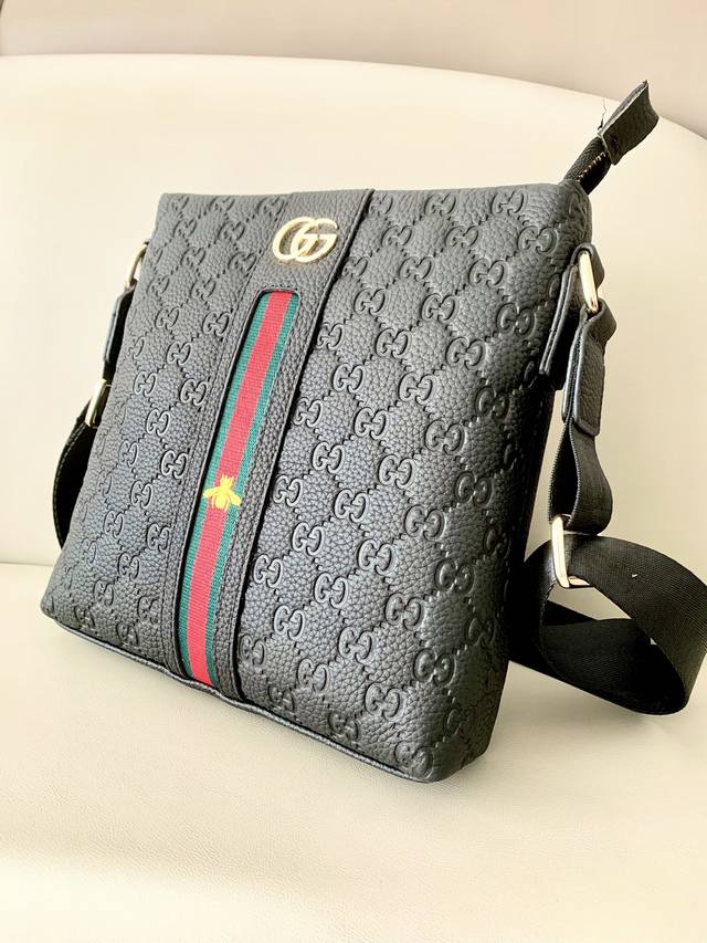 Original New Arrival. Gucci Men's Premium Handbag/Crossbody Bag, a best-selling item in boutiques. Please look for the leather and details. High-end, sophisticated, and classy. Original quality, original cowhide leather and high-grade imported hardware. Made entirely of cowhide, soft and with an excellent feel. High-end, sophisticated, and stylish. Exclusive: First Release. Brand: Gucci. Model: 801. Color: Black. Material: Original Calfskin. Size: 23-27-5.