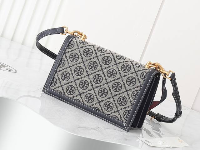 Original Quality Double Shoulder Straps - New Arrival, Pay Attention to Details. Crafted from Tory Burch Ttmonogram woven jacquard fabric. The structured silhouette features sporty mesh straps. Soft faux suede lining with multiple pockets for organized storage of personal items. Every design detail emphasizes practicality. Fits any size phone, including 12-weave jacquard, leather-trimmed, brass-finish hardware, and magnetic snap closure. Adjustable and detachable mesh shoulder strap with a vertical carrying height of 47cm. One internal back pocket. Comes with hangtag stickers, imitation labels, plastic bags, and branded paper. Dimensions: Height 15cm, Length 23cm, Depth 9cm.