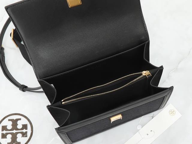Original Quality Double Shoulder Straps - New Arrival, Pay Attention to Details. Crafted from Tory Burch Ttmonogram woven jacquard fabric. The structured silhouette features sporty mesh straps. Soft faux suede lining with multiple pockets for organized storage of personal items. Every design detail emphasizes practicality. Fits any size phone, including 12-weave jacquard, leather-trimmed, brass-finish hardware, and magnetic snap closure. Adjustable and detachable mesh shoulder strap with a vertical carrying height of 47cm. One internal back pocket. Comes with hangtag stickers, imitation labels, plastic bags, and branded paper. Dimensions: Height 15cm, Length 23cm, Depth 9cm.