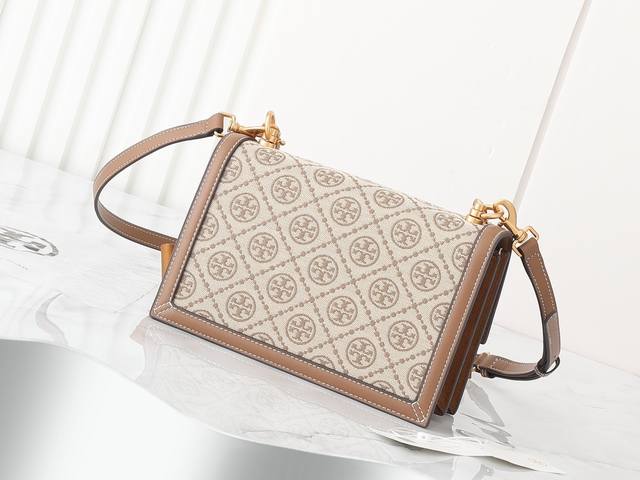 Original Quality Double Shoulder Straps - New Product Details: Crafted from Tory Burch Ttmonogram woven jacquard fabric. The structured silhouette features sporty mesh straps. Soft faux suede lining with multiple pockets for organized storage of personal items. Every design detail emphasizes practicality. Fits any size phone, including 12-weave jacquard, leather-trimmed, brass-finish hardware, and magnetic snap closure. Adjustable and detachable mesh shoulder strap with a vertical carrying height of 47cm. One internal back pocket. Comes with hangtag stickers, imitation labels, plastic bags, and branded paper. Dimensions: Height 15cm, Length 23cm, Depth 9cm.